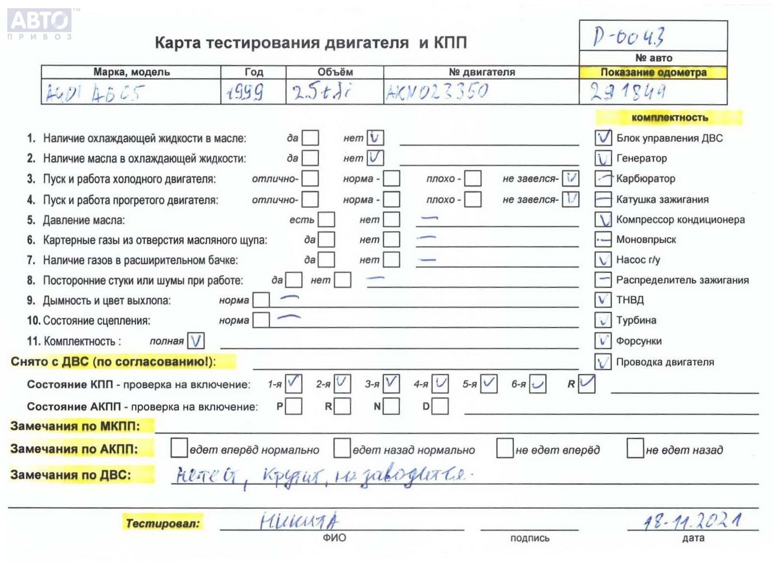 | Марка / Модель / Год: | Audi A6 C5 (1997-2005) 1999 |