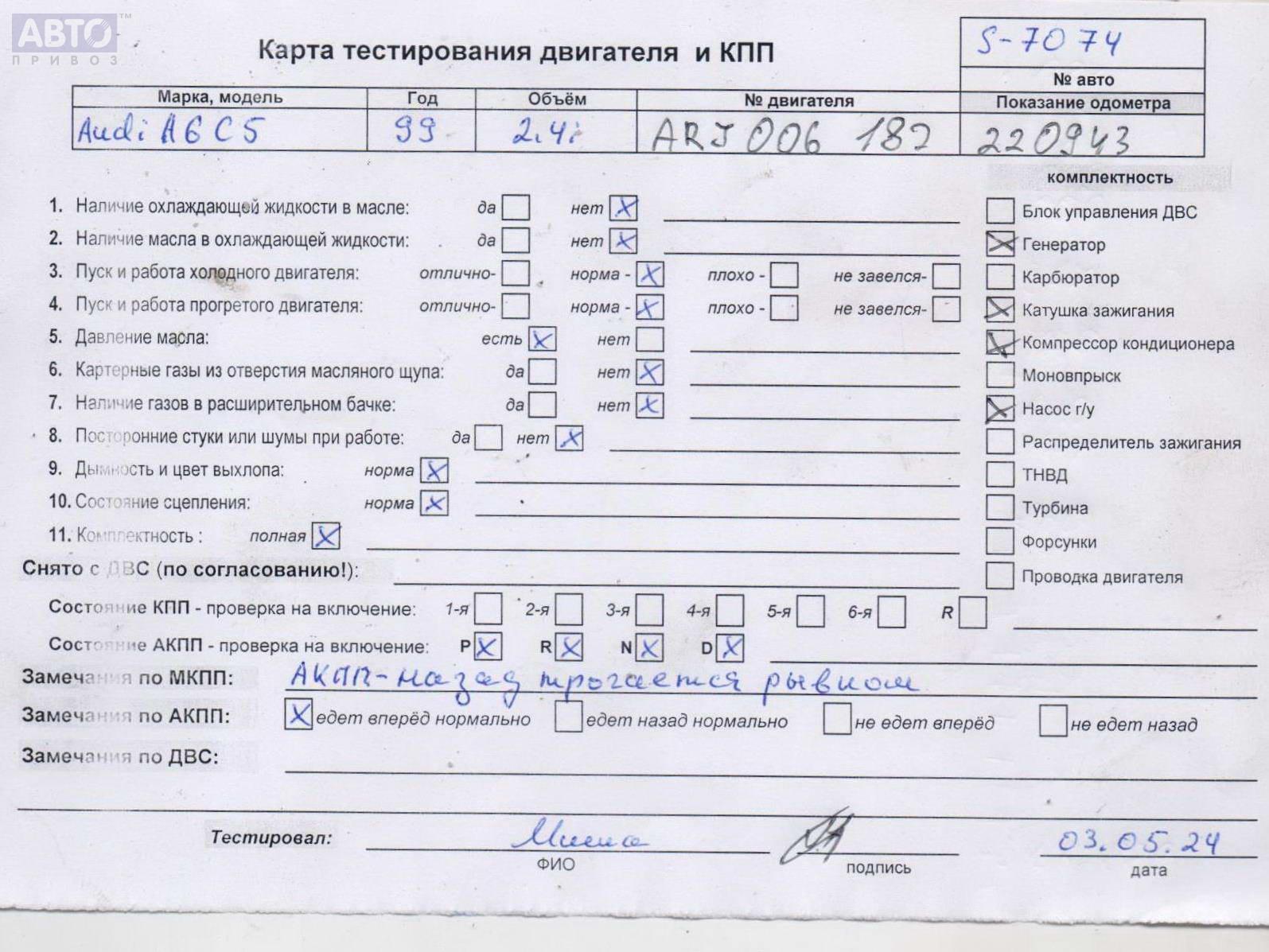 | Автомобиль / VIN: | S7074 WAUZZZ4BZXN103775 |