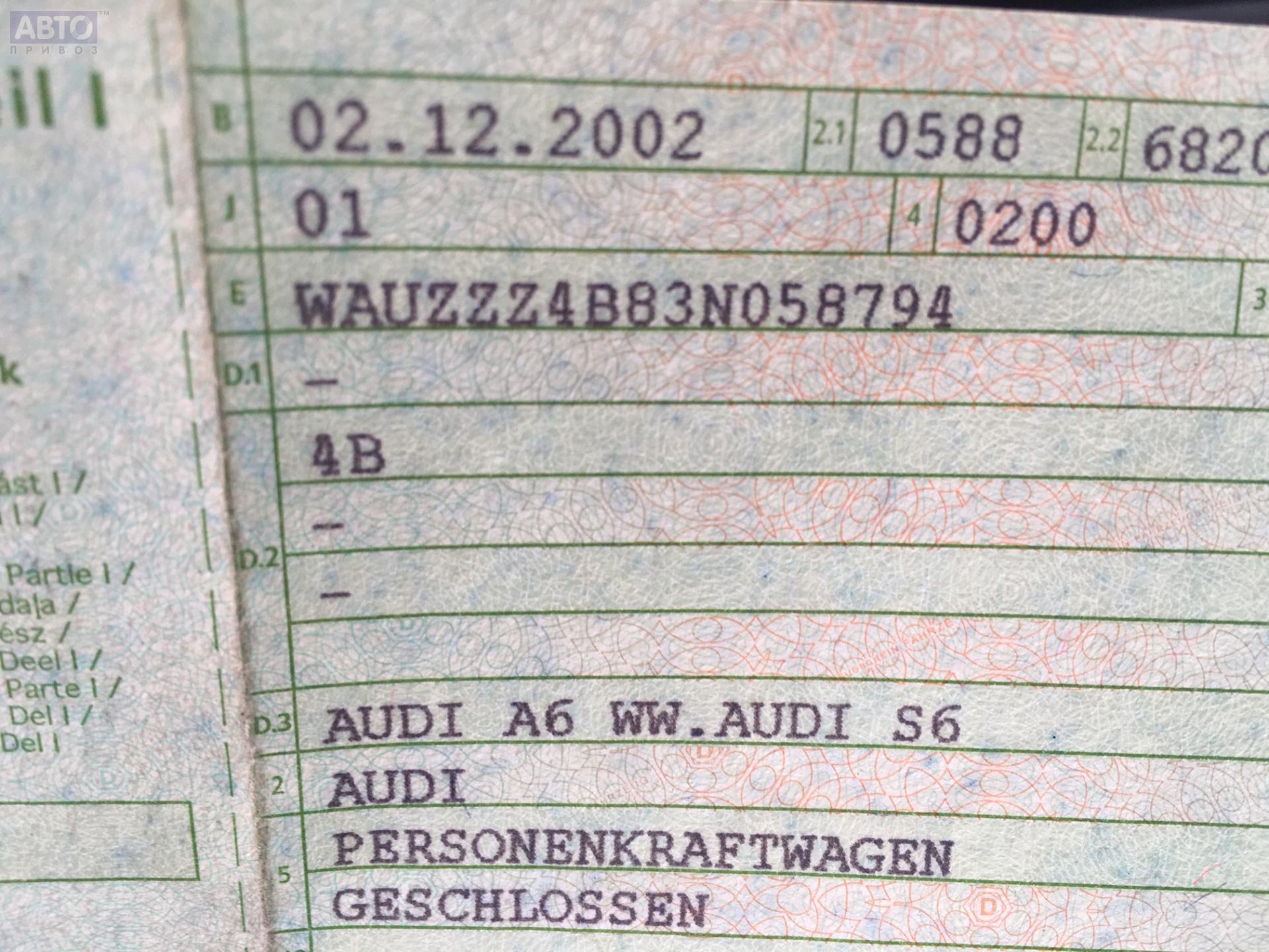 | Марка / Модель / Год: | Audi A6 C5 (1997-2005) 2002 |