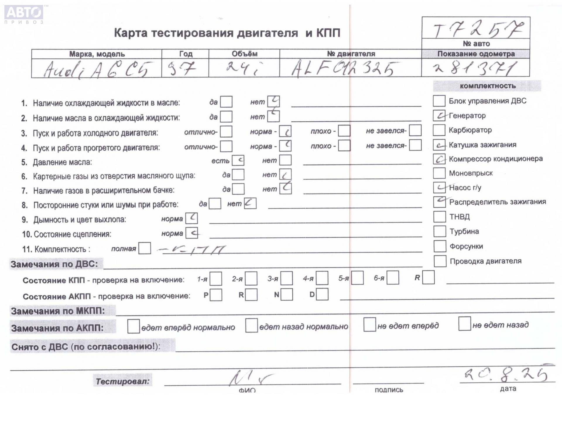 | Марка / Модель / Год: | Audi A6 C5 (1997-2005) 1997 |