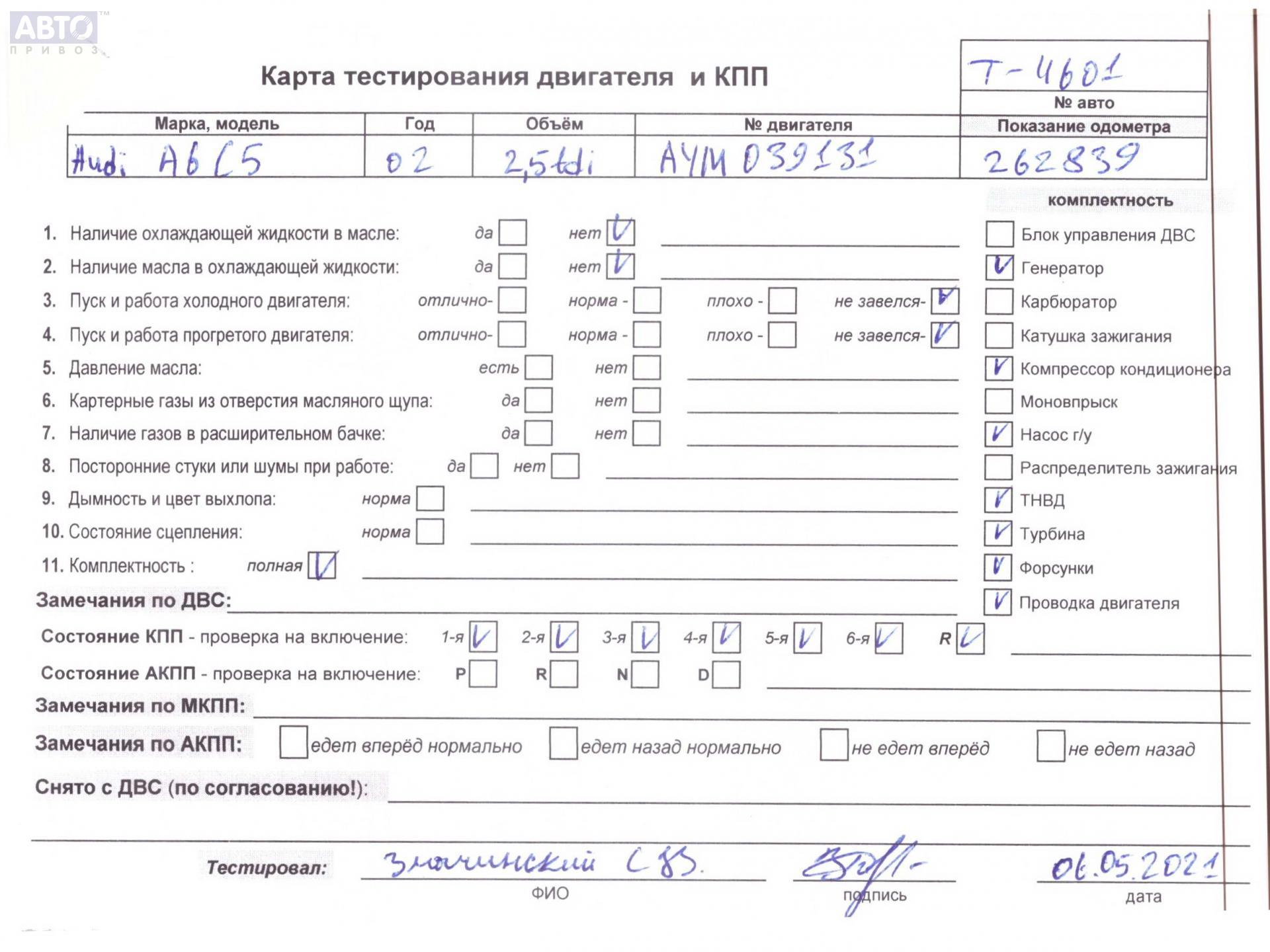 | Марка / Модель / Год: | Audi A6 C5 (1997-2005) 2002 |