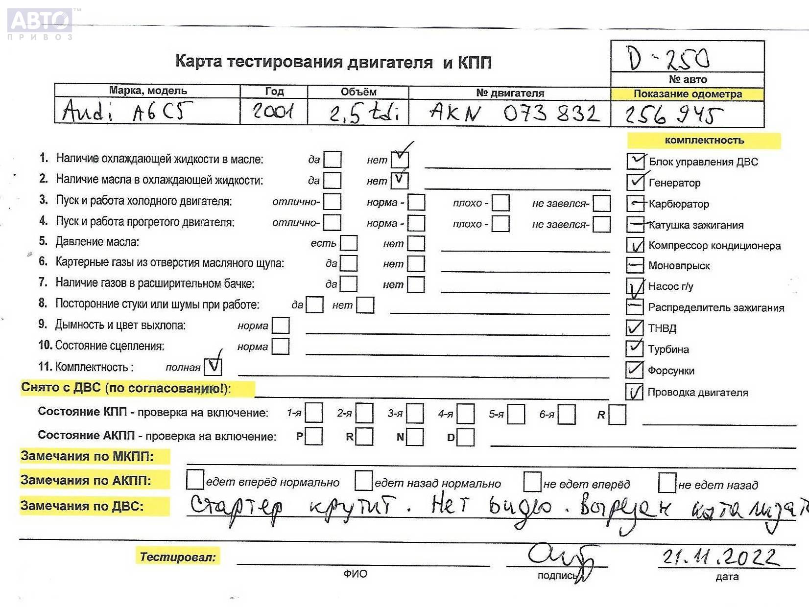 | Марка / Модель / Год: | Audi A6 C5 (1997-2005) 2001 |