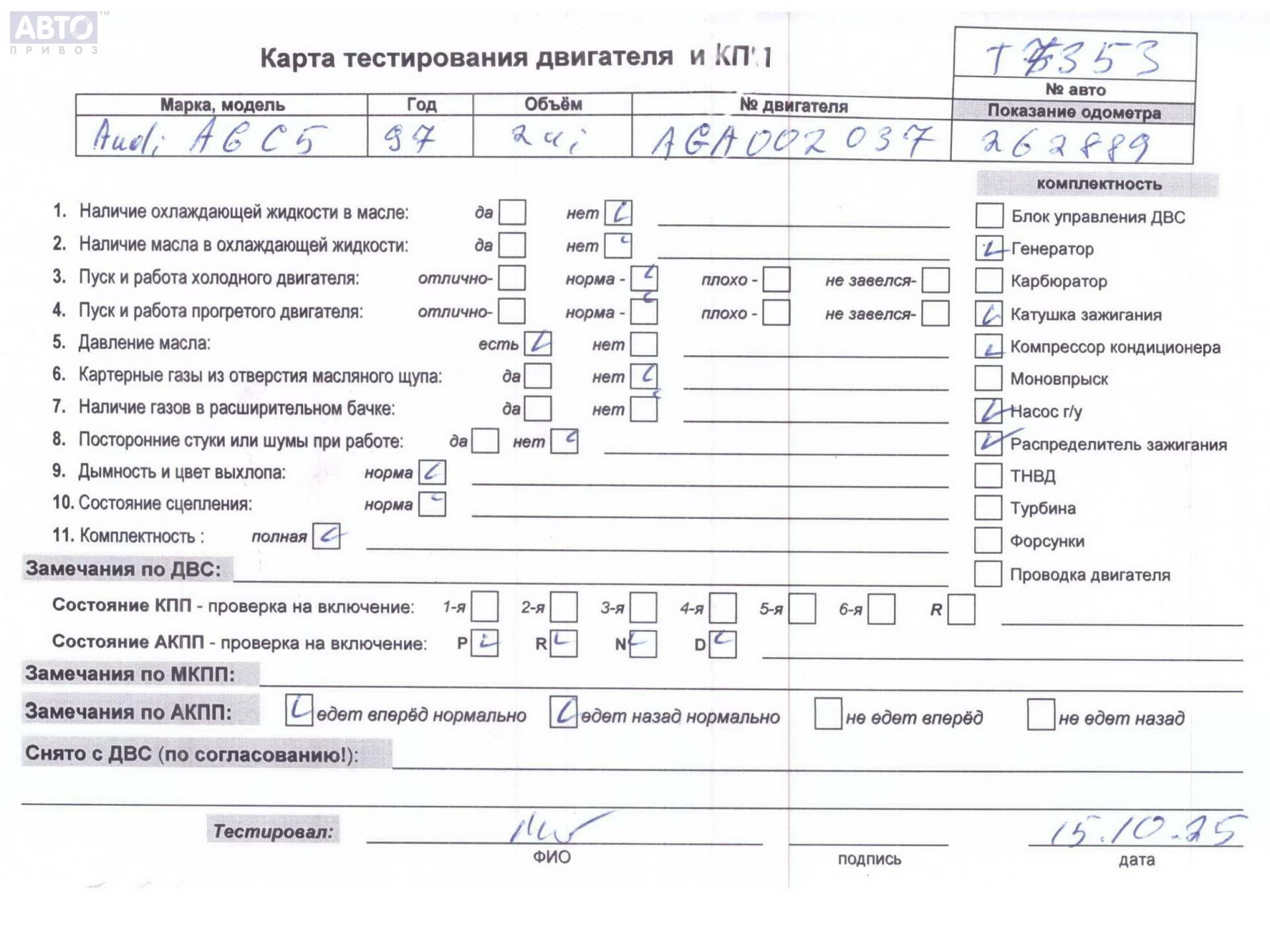 | Автомобиль / VIN: | T7353 WAUZZZ4BZWN004228 |