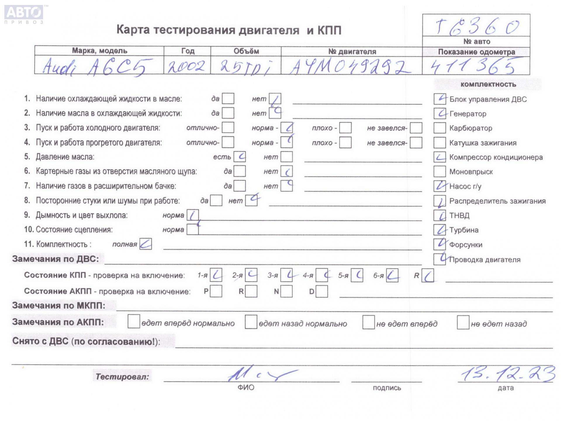 | Марка / Модель / Год: | Audi A6 C5 (1997-2005) 2002 |