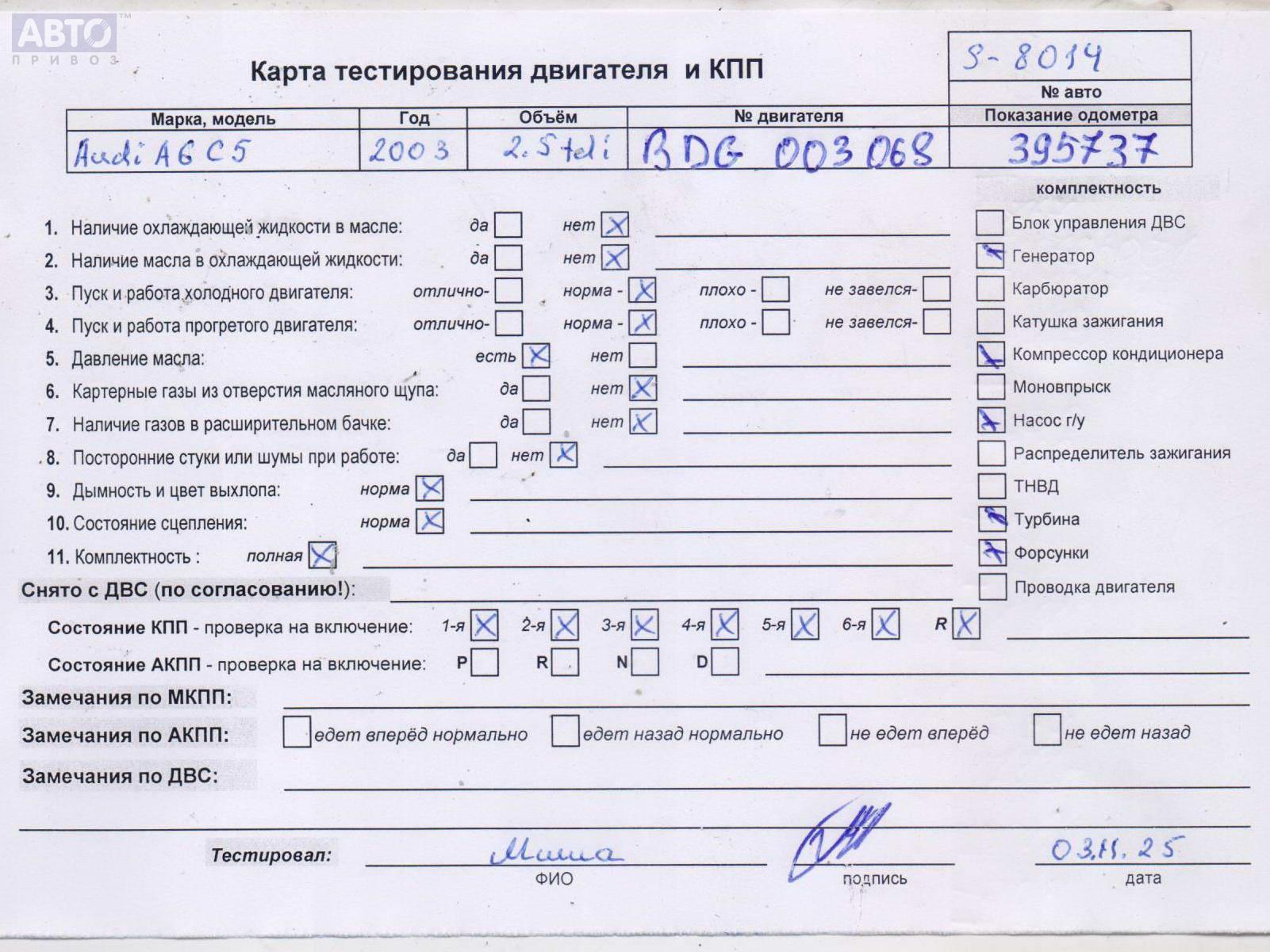 | Марка / Модель / Год: | Audi A6 C5 (1997-2005) 2003 |
