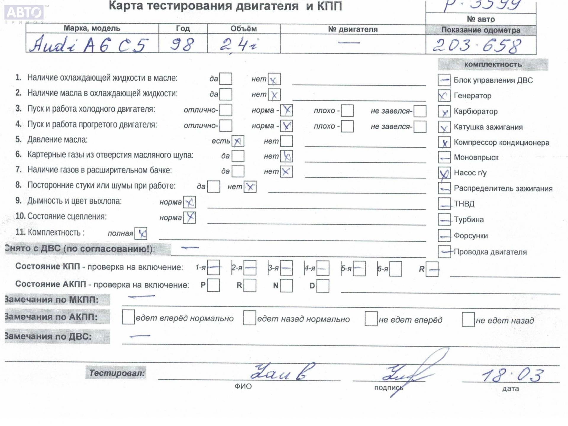 | Марка / Модель / Год: | Audi A6 C5 (1997-2005) 1998 |