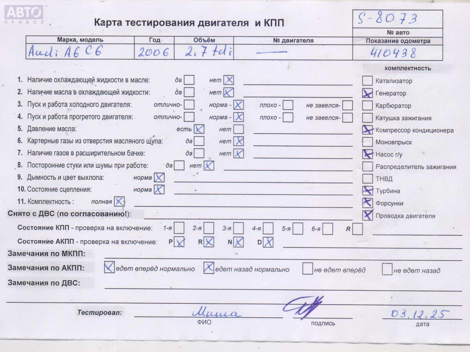 | Автомобиль / VIN: | S8073 WAUZZZ4F57N041962 |