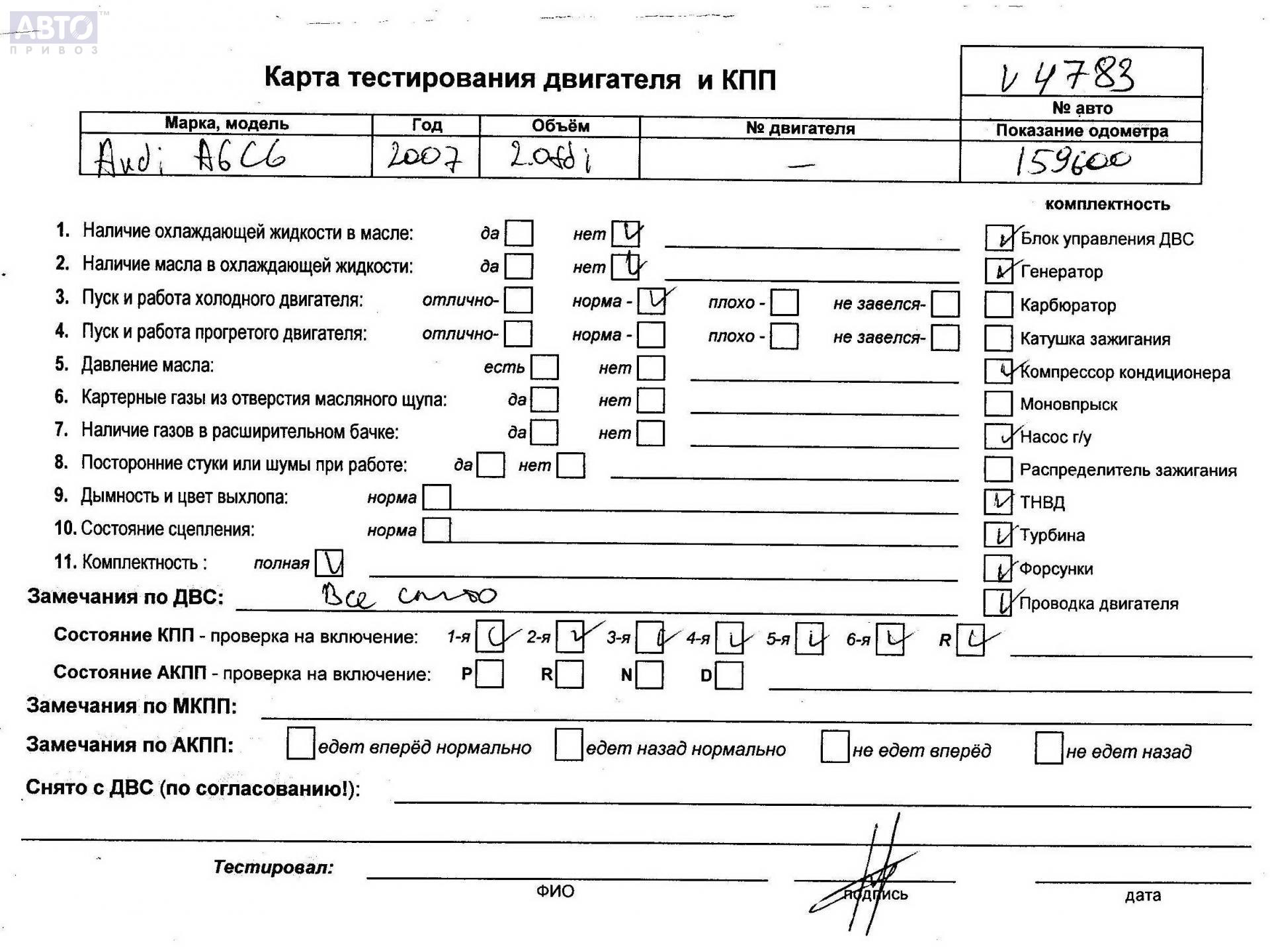 | Марка / Модель / Год: | Audi A6 C6 (2004-2011) 2007 |