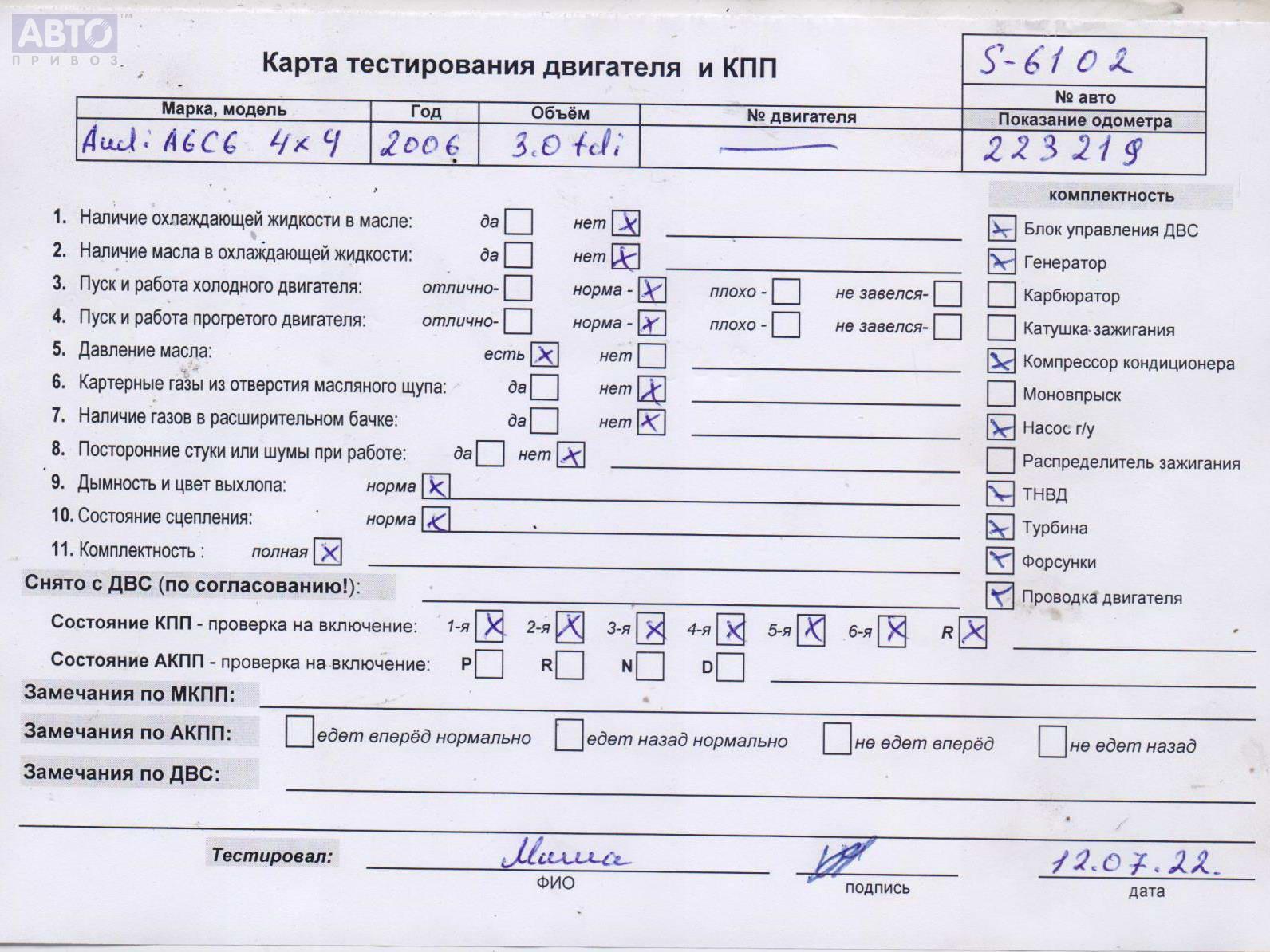 | Автомобиль / VIN: | S6102 WAUZZZ4F96N156191 |