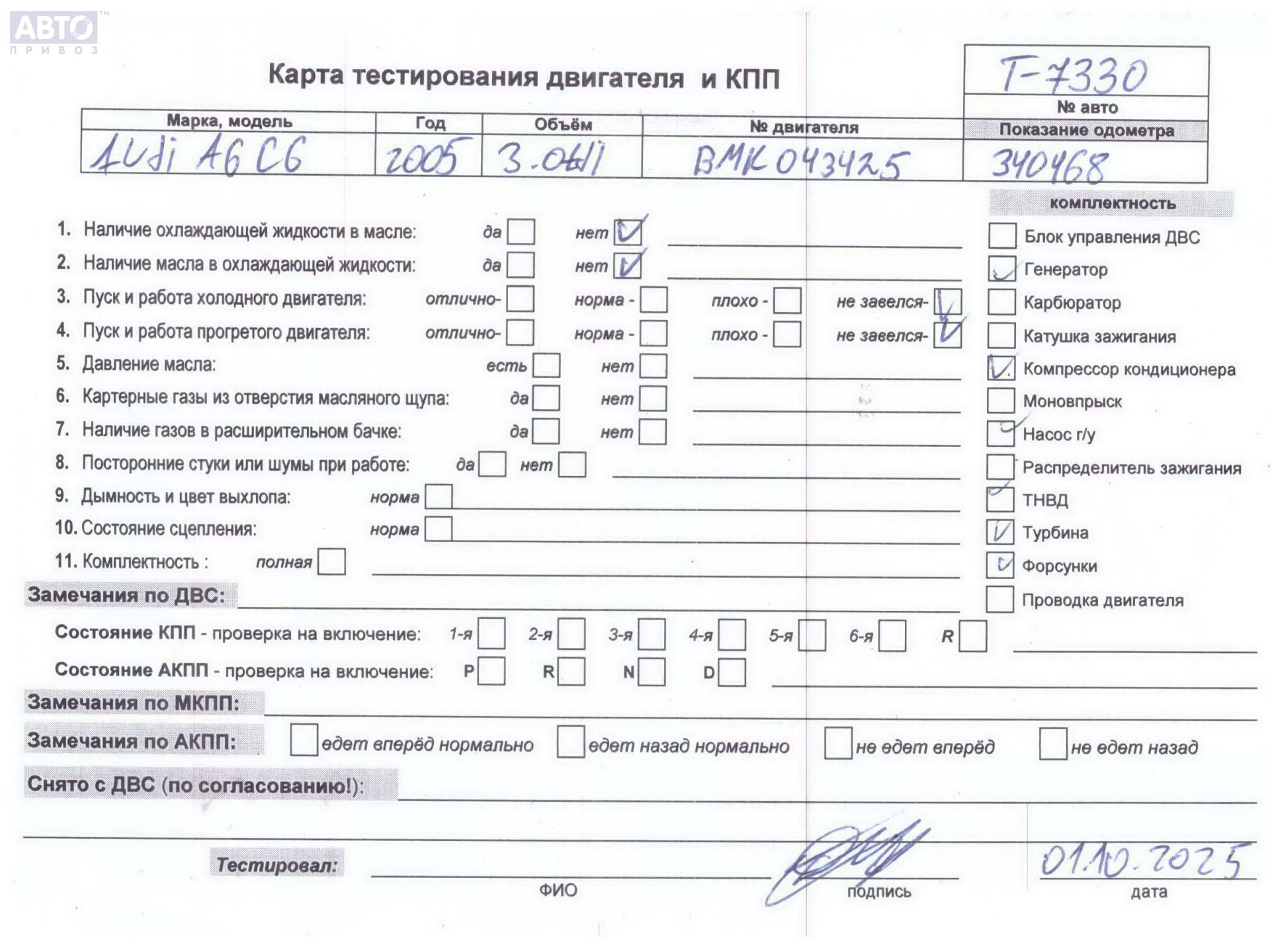 | Марка / Модель / Год: | Audi A6 C6 (2004-2011) 2005 |