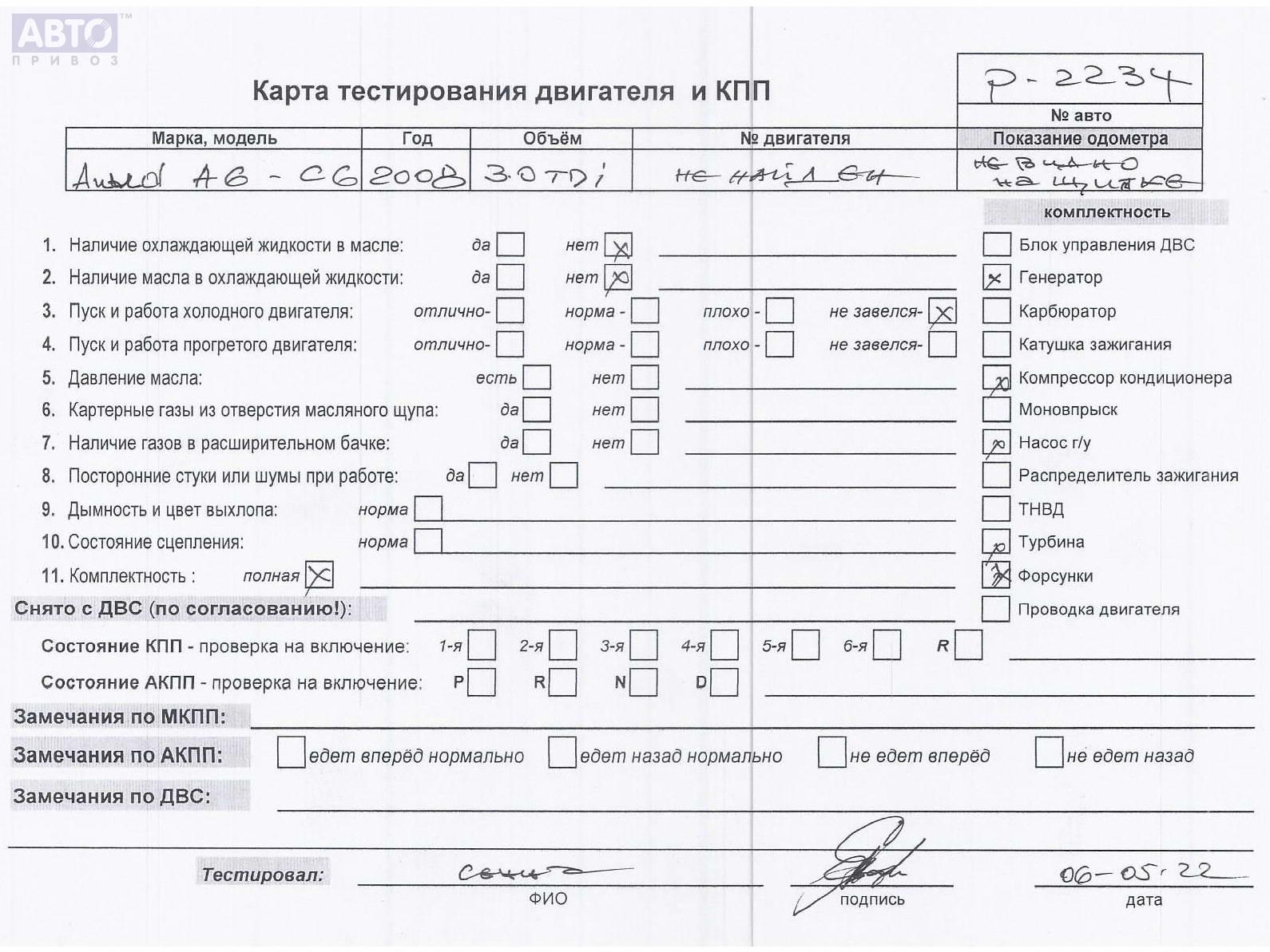 | Марка / Модель / Год: | Audi A6 C6 (2004-2011) 2008 |