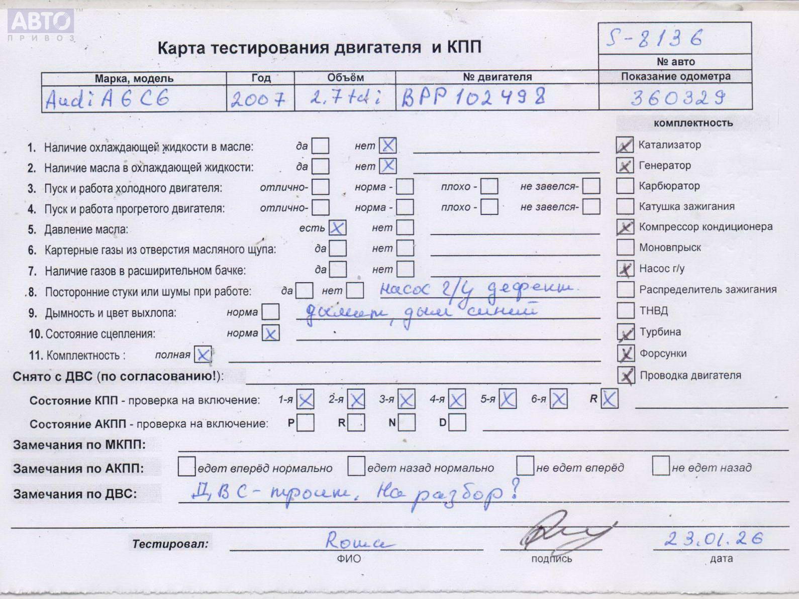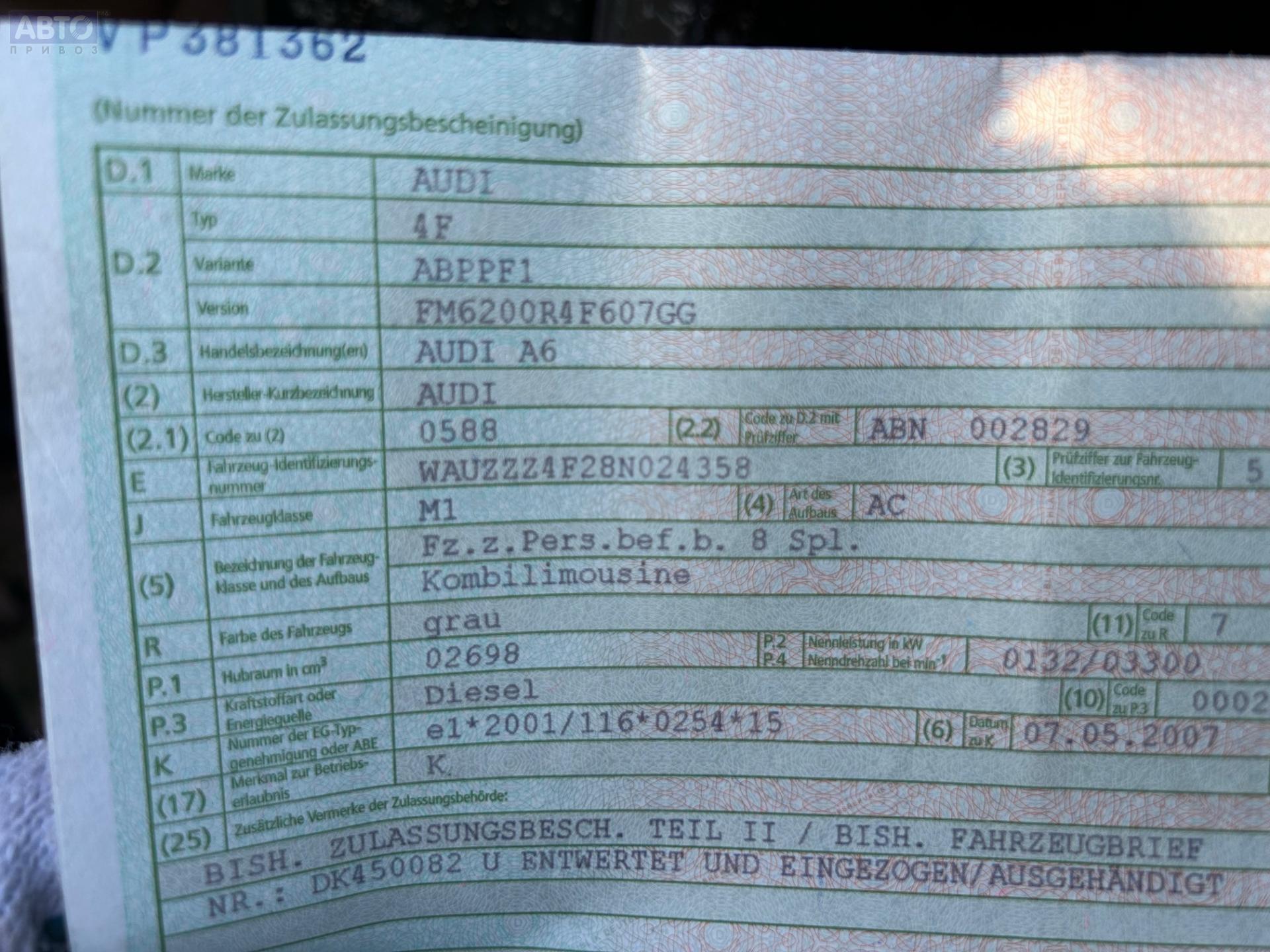 | Марка / Модель / Год: | Audi A6 C6 (2004-2011) 2007 |