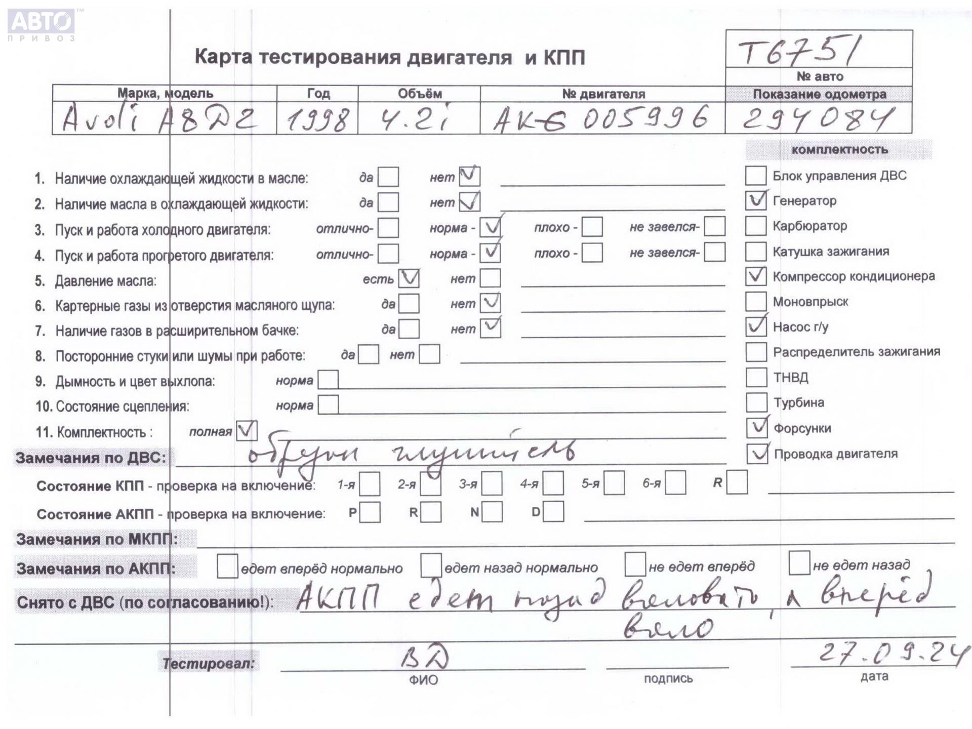 | Автомобиль / VIN: | T6751 WAUZZZ4DZWN011565 |