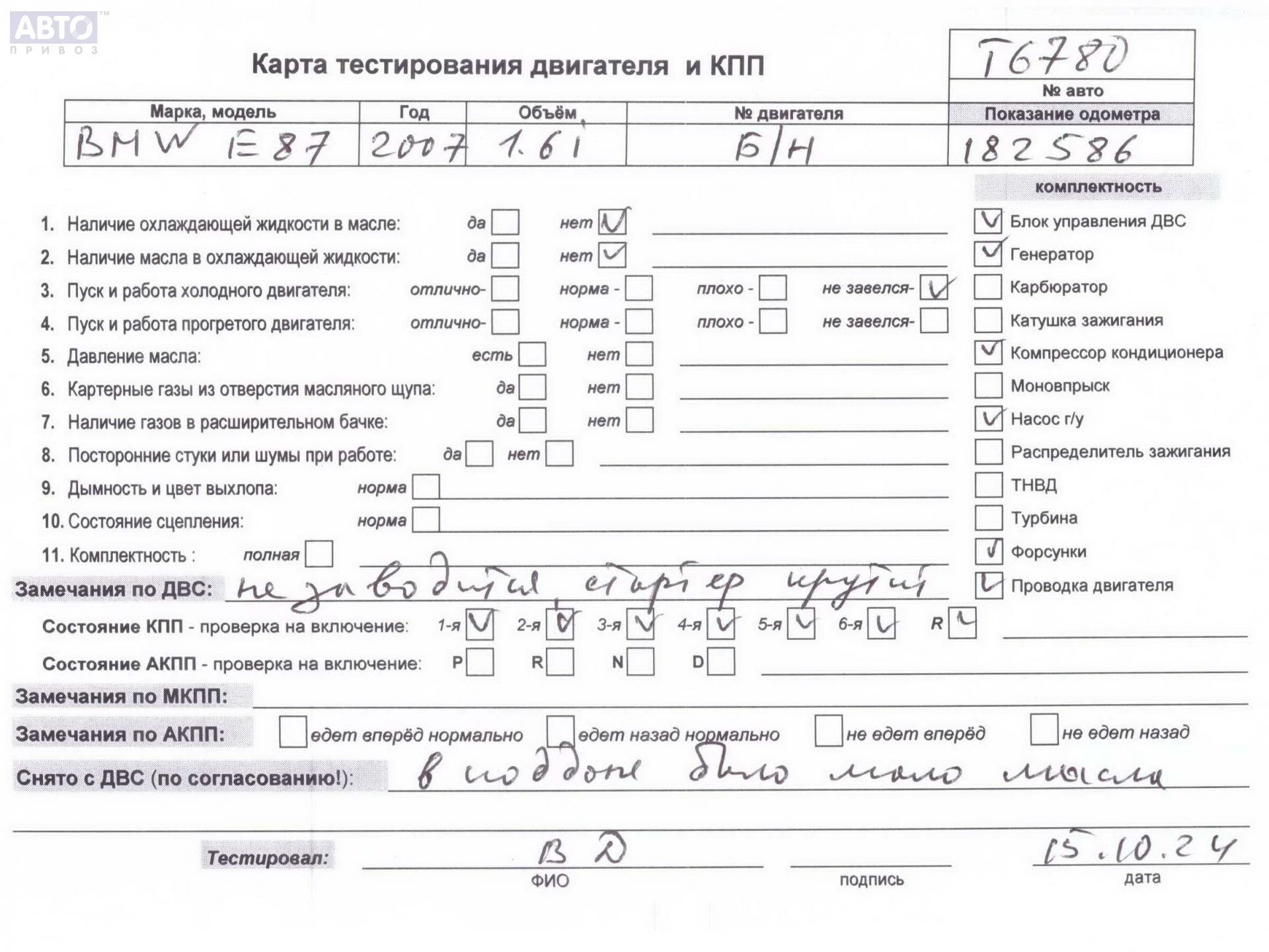 | Автомобиль / VIN: | T6780 WBAUE11040PZ49322 |