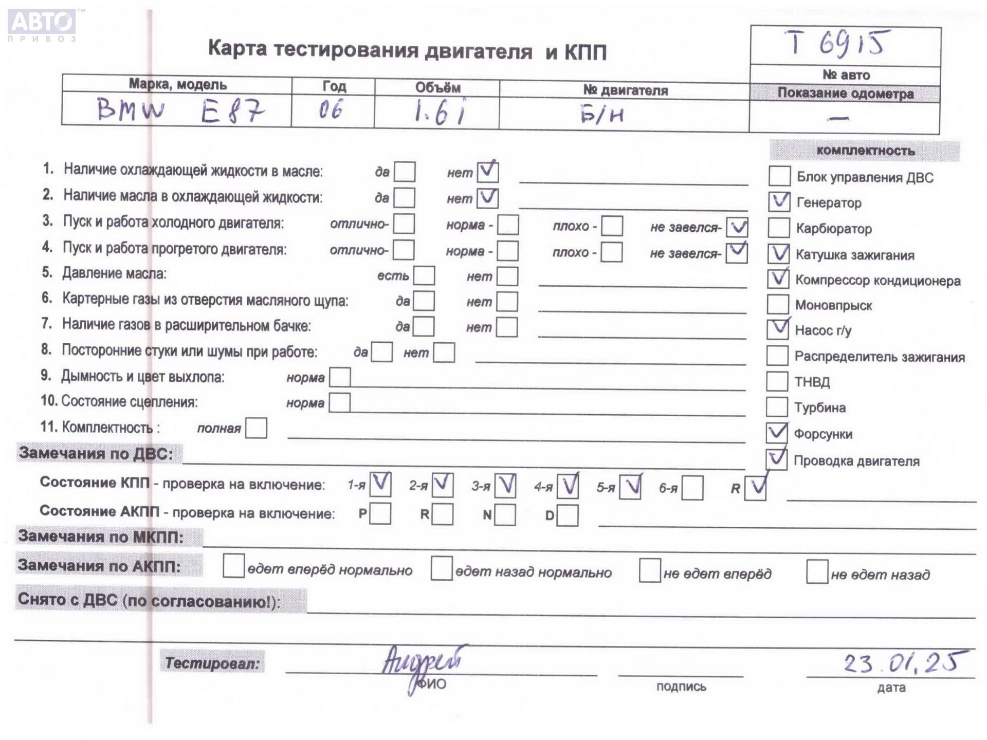 | Автомобиль / VIN: | T6915 WBAUF11000PT87965 |