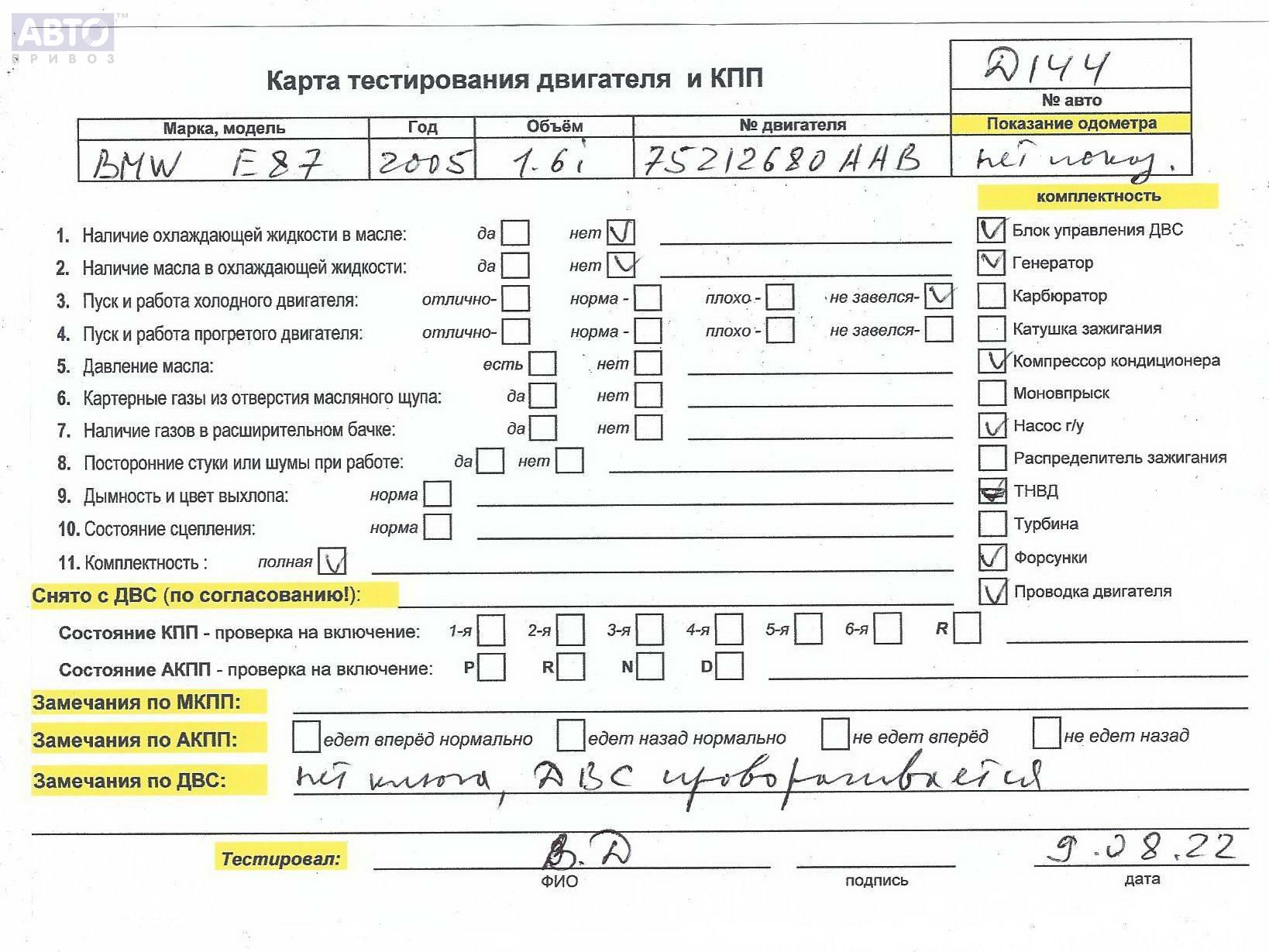 | Автомобиль / VIN: | D0144 WBAUF11070PT71410 |