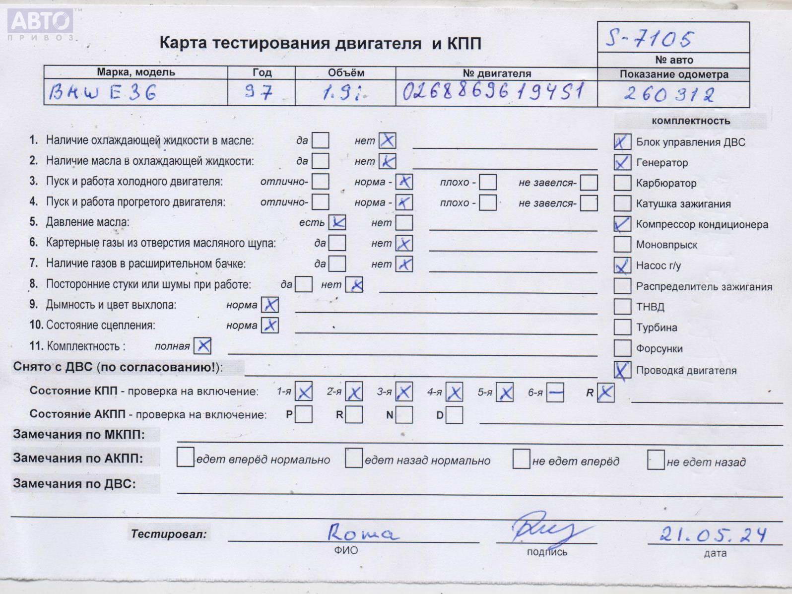 | Автомобиль / VIN: | S7105 WBACG71090AR27957 |