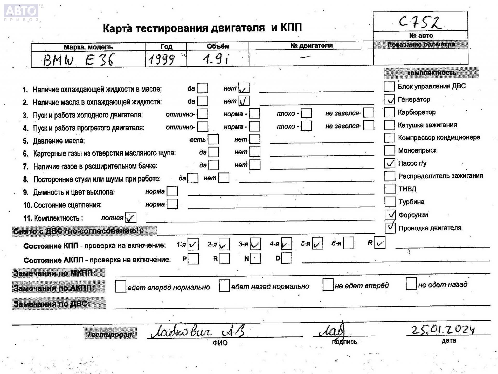 | Автомобиль / VIN: | C0752 WBACS11030FR77073 |