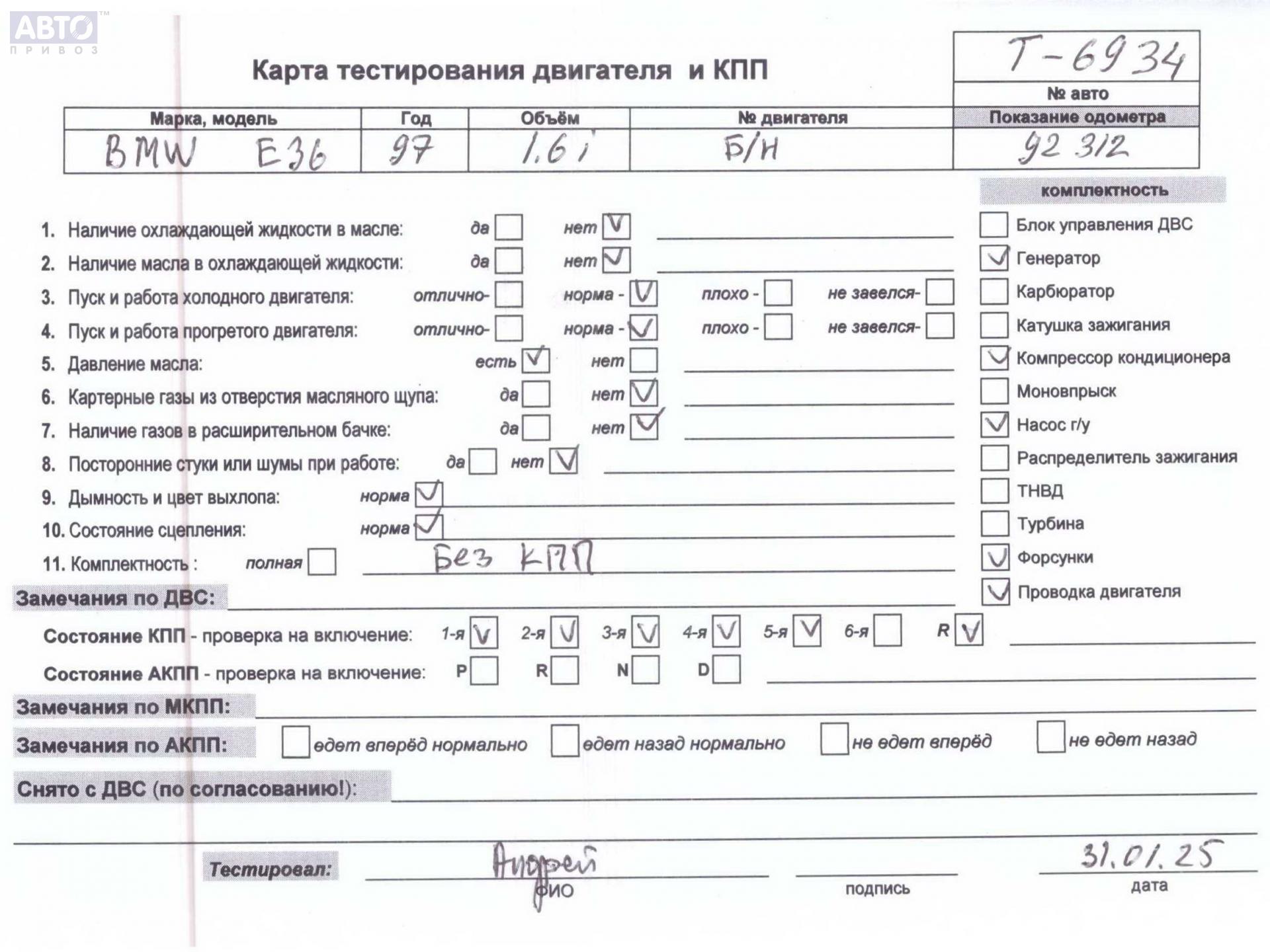 | Автомобиль / VIN: | T6934 WBACG110X0KD69496 |
