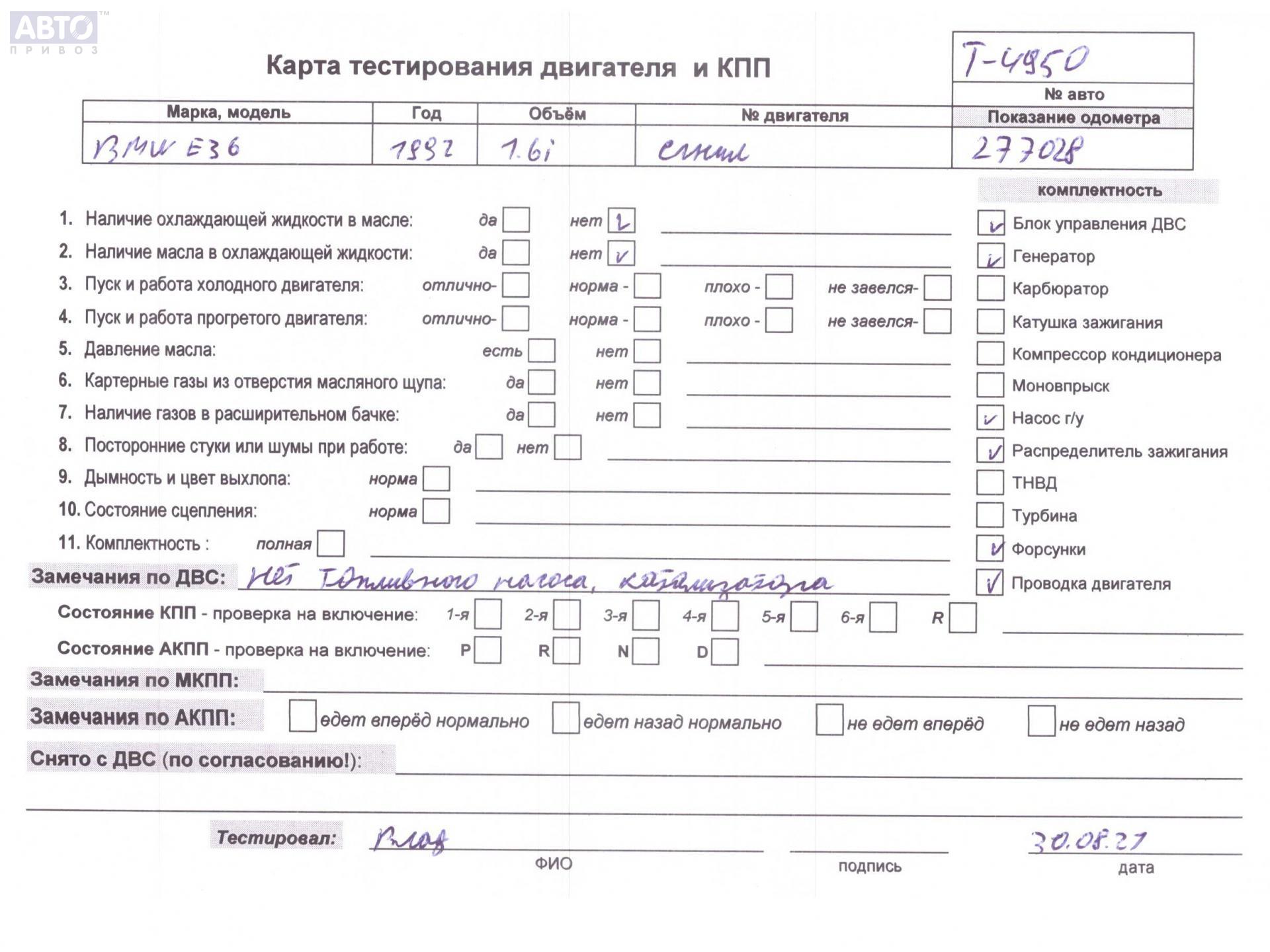 | Автомобиль / VIN: | T4950 WBACA11070EL85393 |