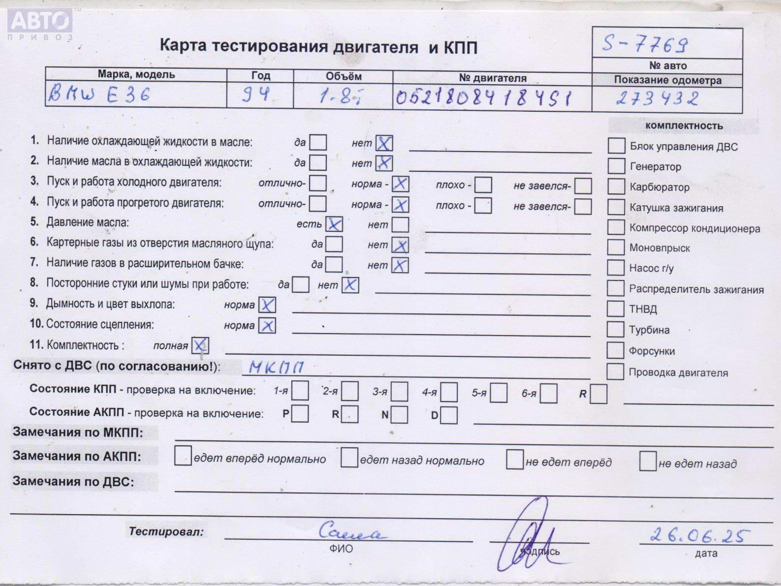 | Автомобиль / VIN: | S7769 WBACG51060AM02620 |
