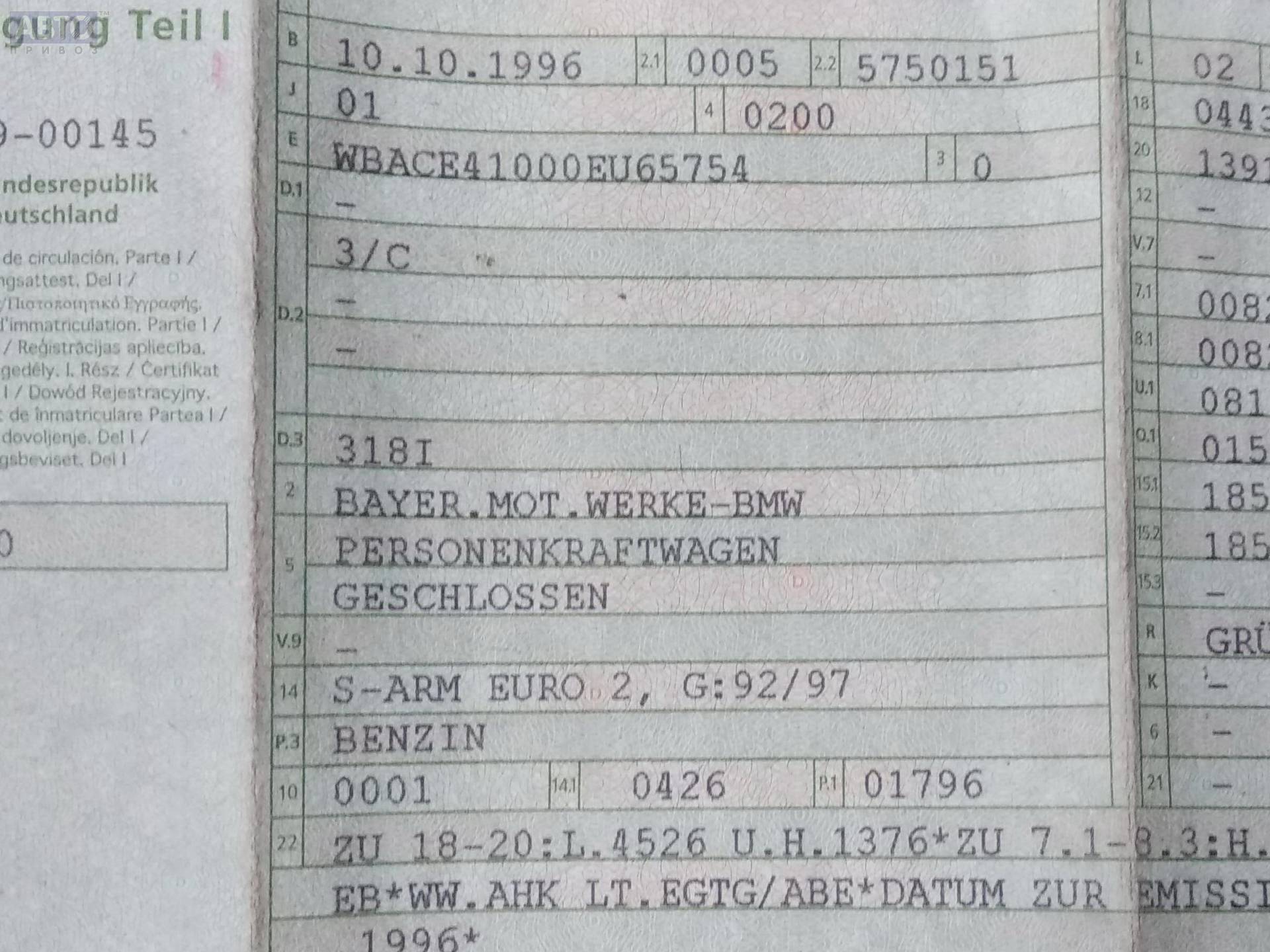 | Марка / Модель / Год: | BMW 3 E36 (1991-2000) 1996 |