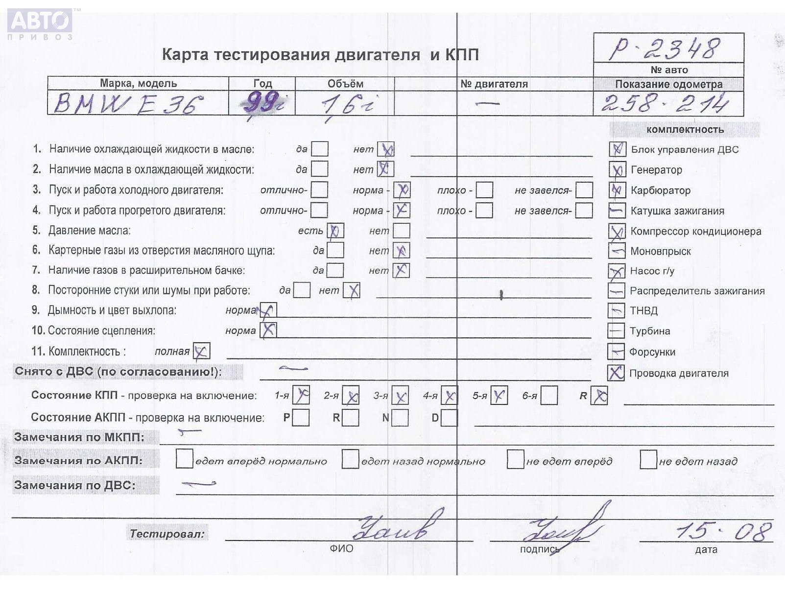 | Автомобиль / VIN: | P2348 WBACS11020FR77534 |