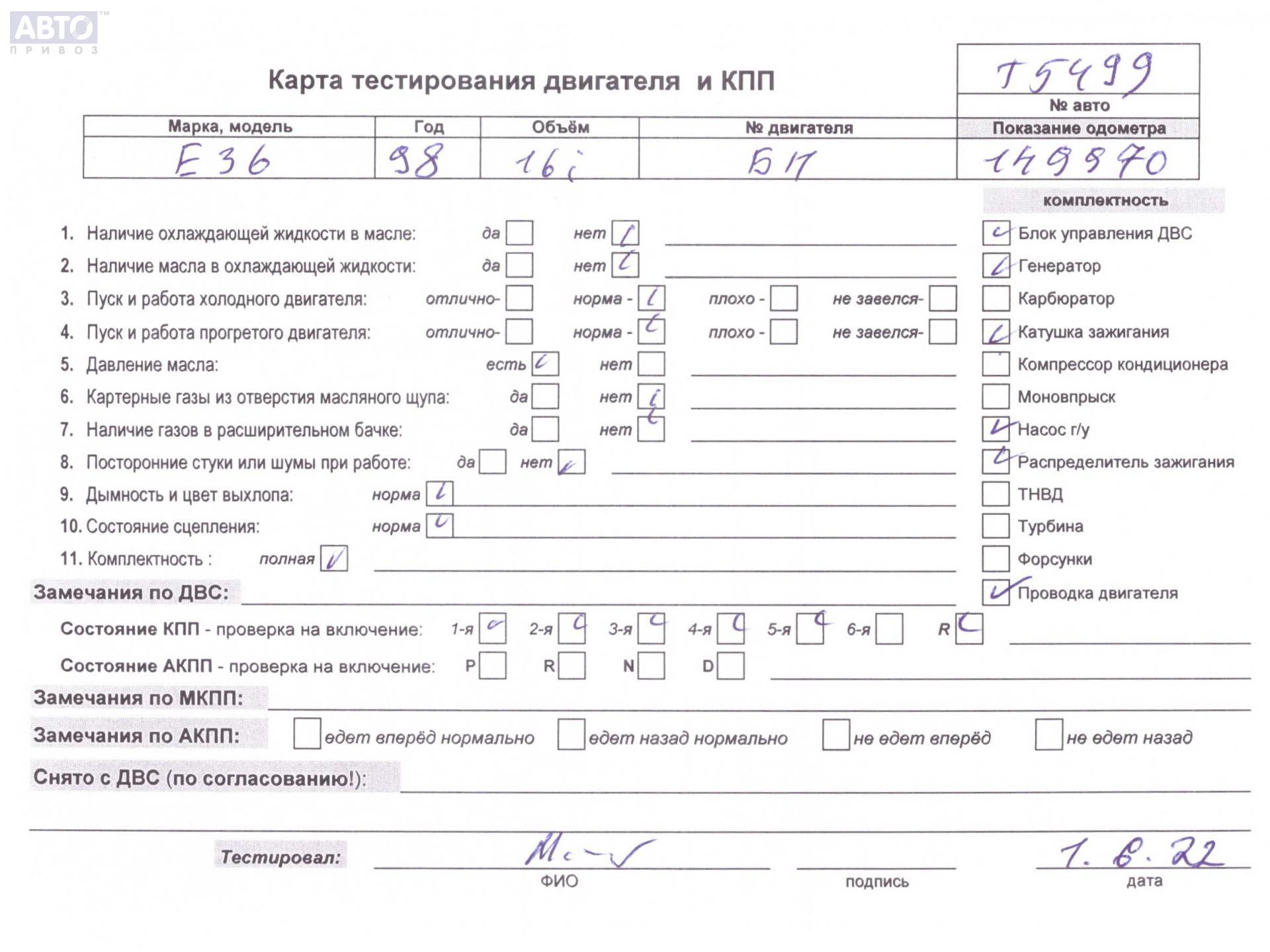 | Автомобиль / VIN: | T5499 WBACA710X0JE37208 |