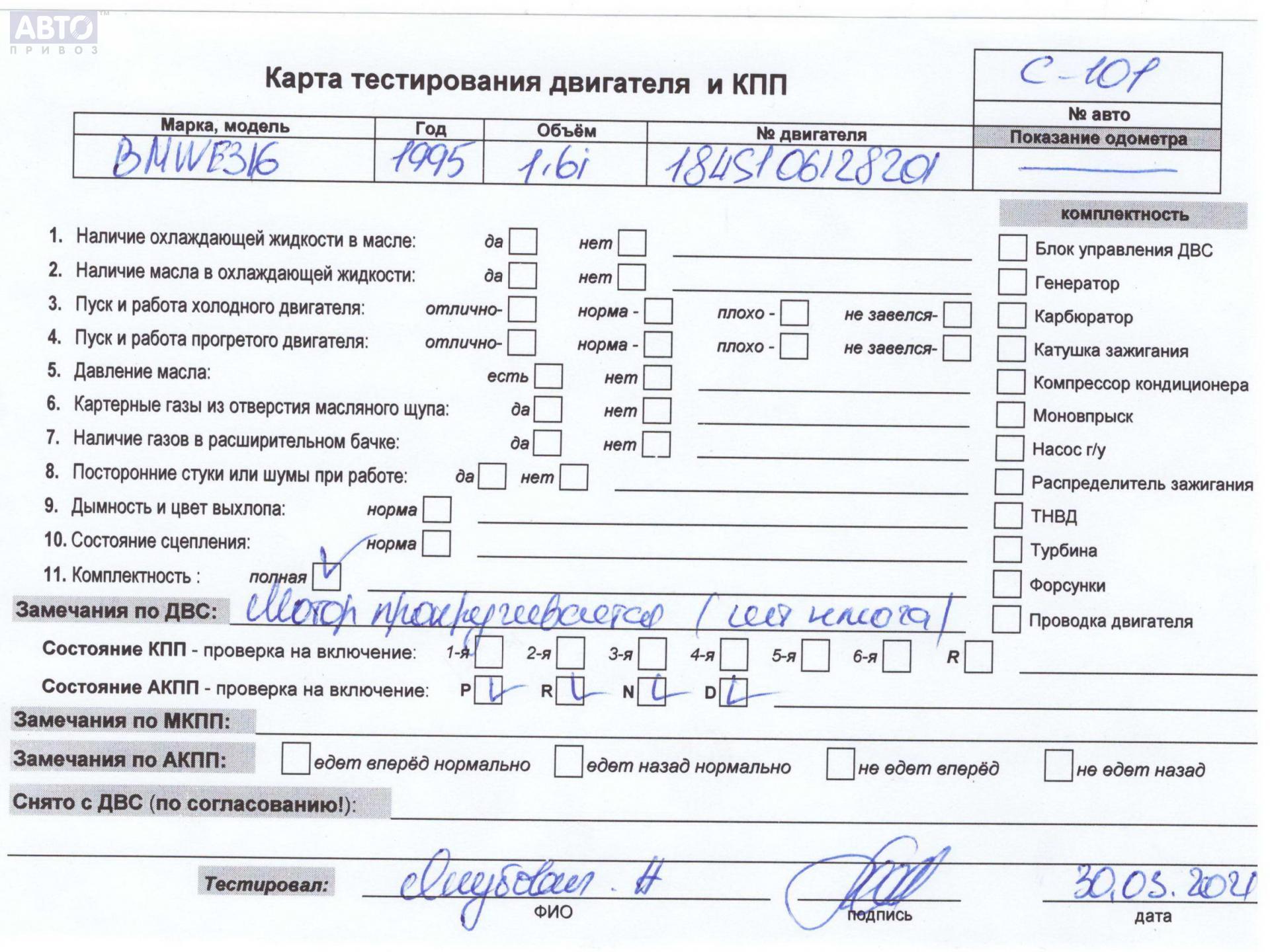 | Автомобиль / VIN: | C0101 WBACG61020AH92012 |