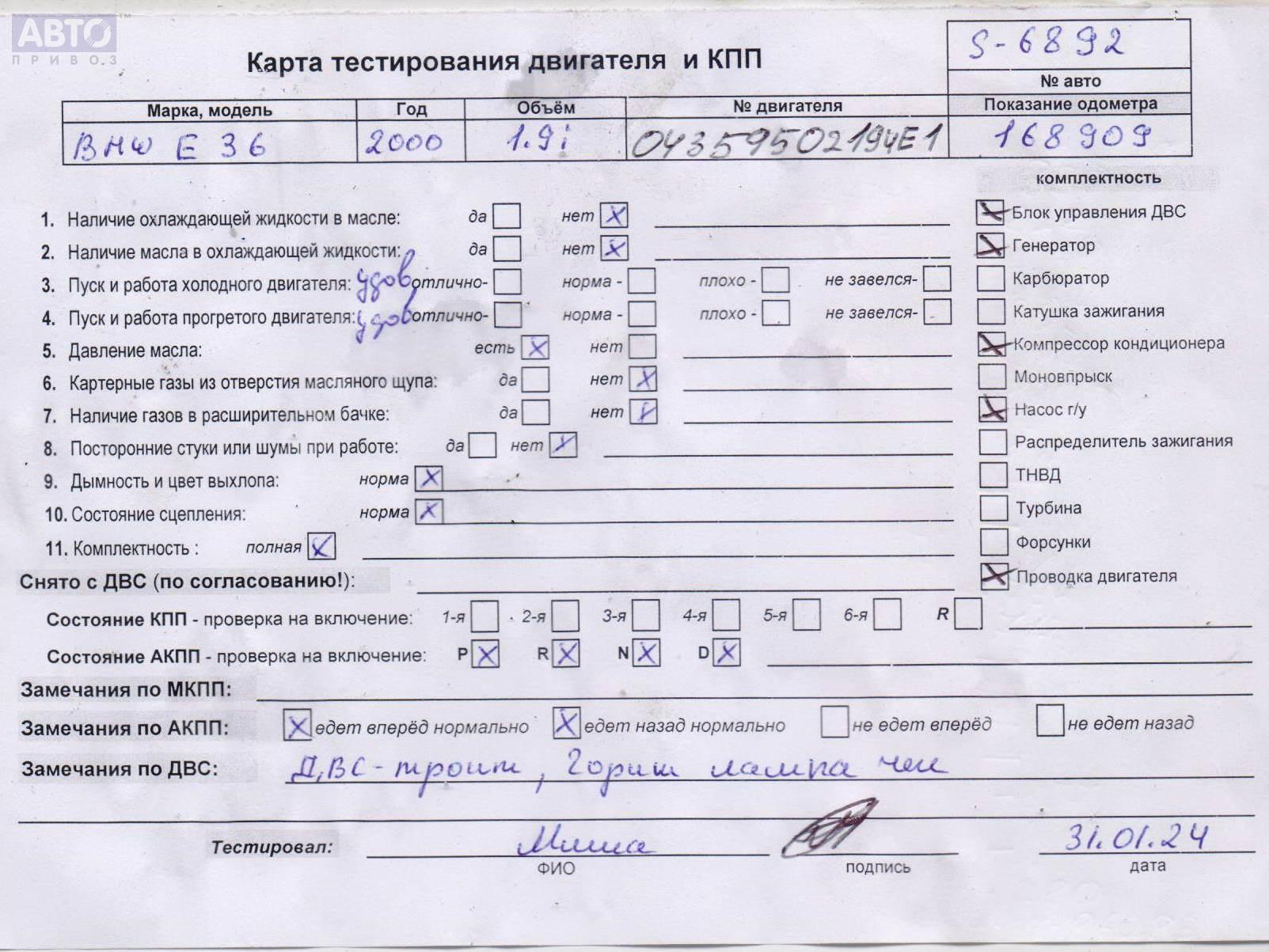 | Автомобиль / VIN: | S6892 WBACS21070AR99841 |