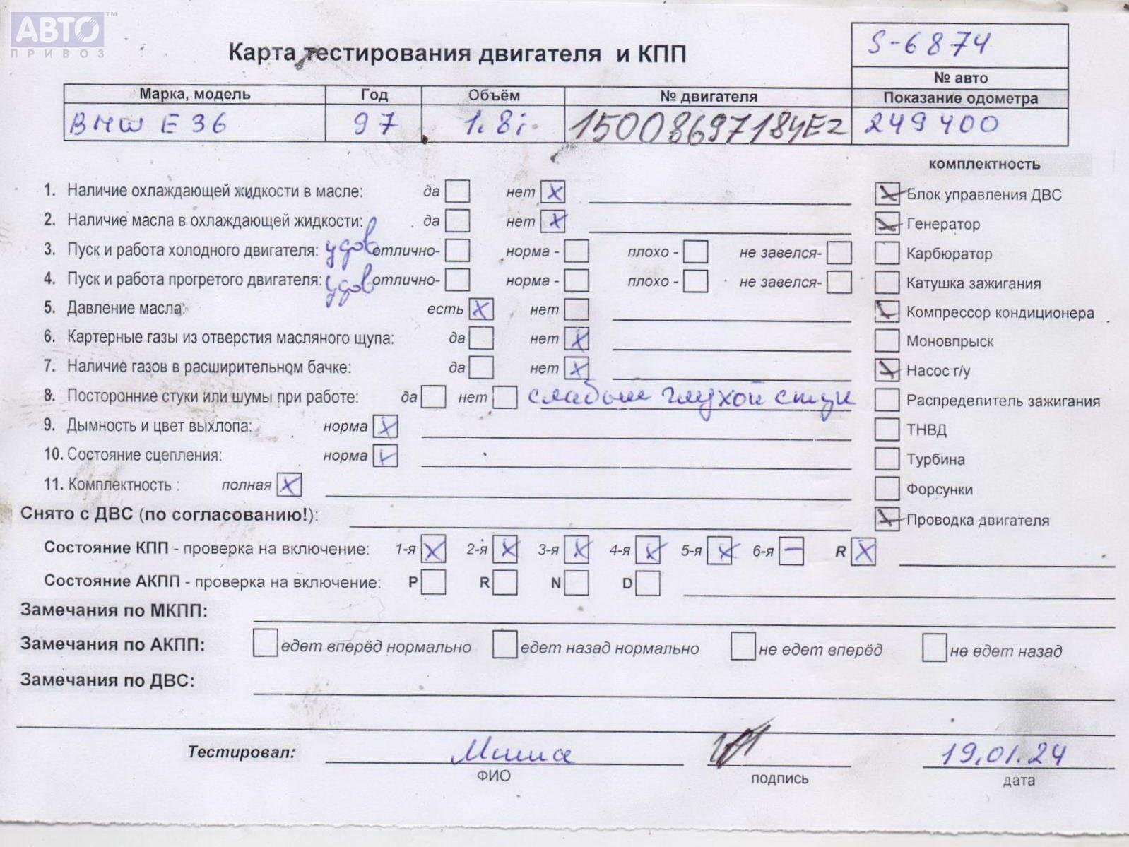 | Автомобиль / VIN: | S6874 WBACA91080JF33480 |
