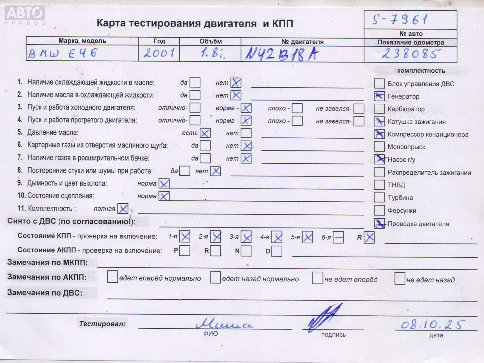 | Автомобиль / VIN: | S7961 WBAAT51050FW18481 |
