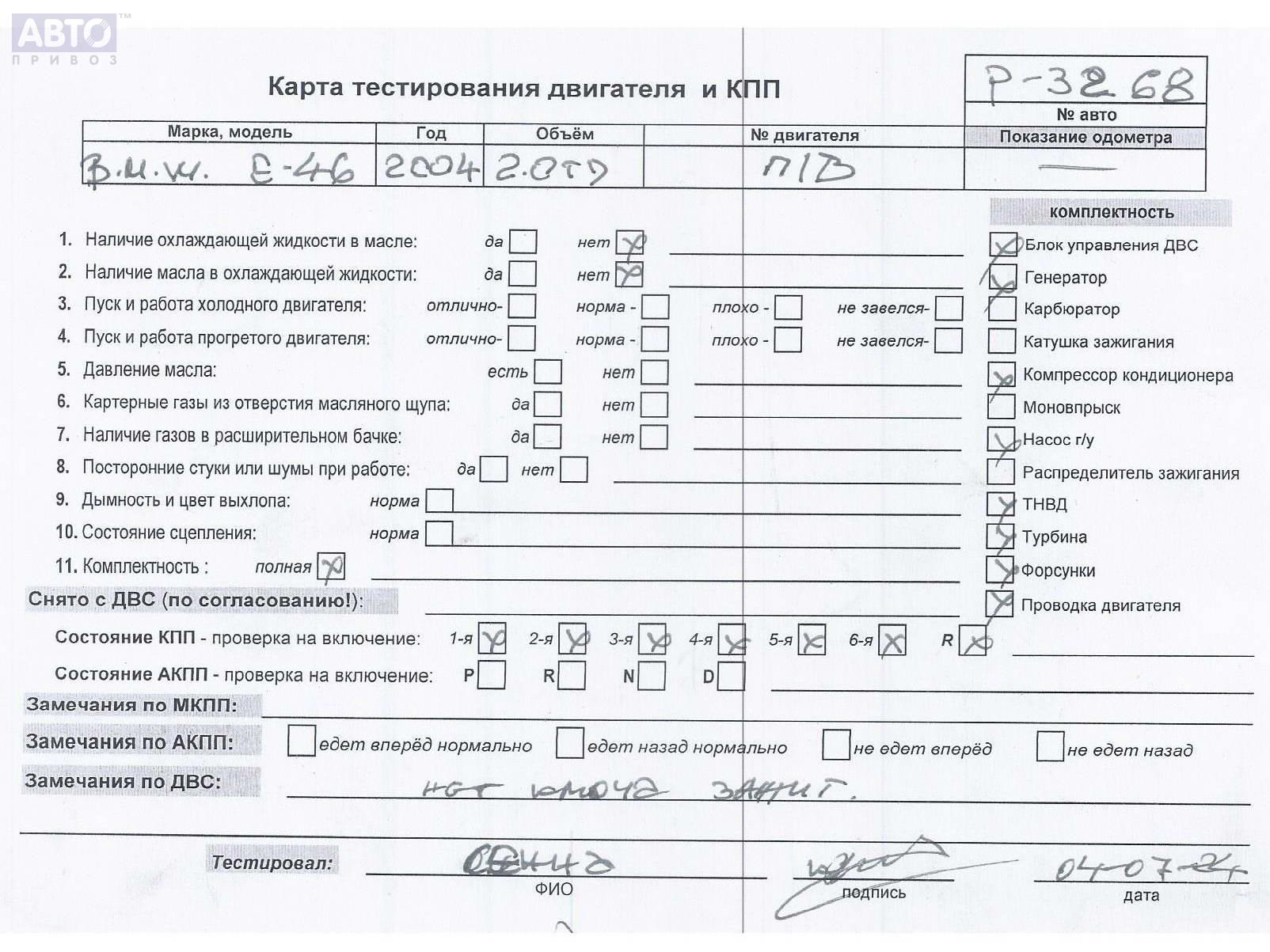 | Марка / Модель / Год: | BMW 3 E46 (1998-2006) 2004 |