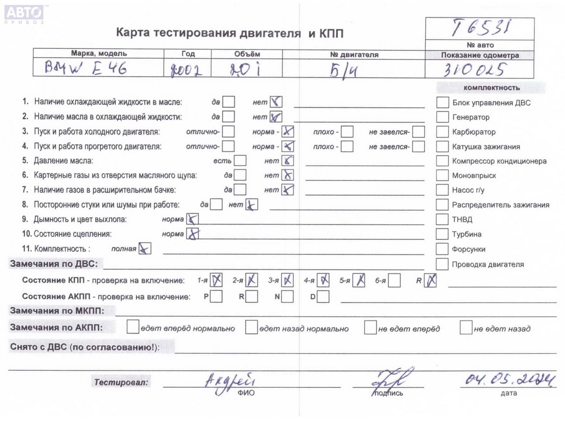 | Марка / Модель / Год: | BMW 3 E46 (1998-2006) 2002 |