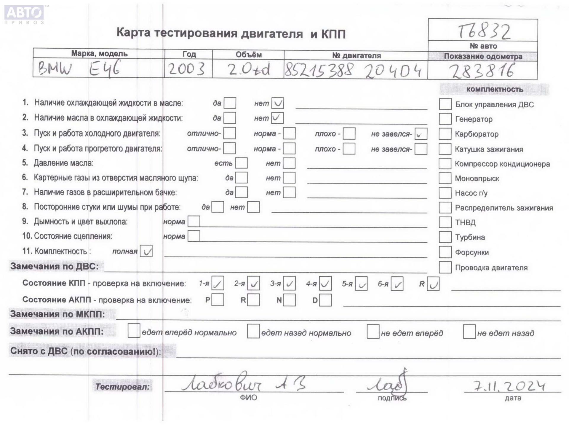 | Марка / Модель / Год: | BMW 3 E46 (1998-2006) 2003 |