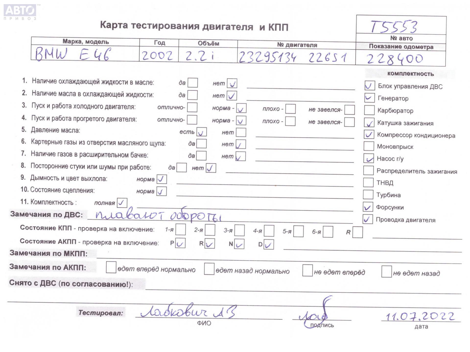| Марка / Модель / Год: | BMW 3 E46 (1998-2006) 2002 |