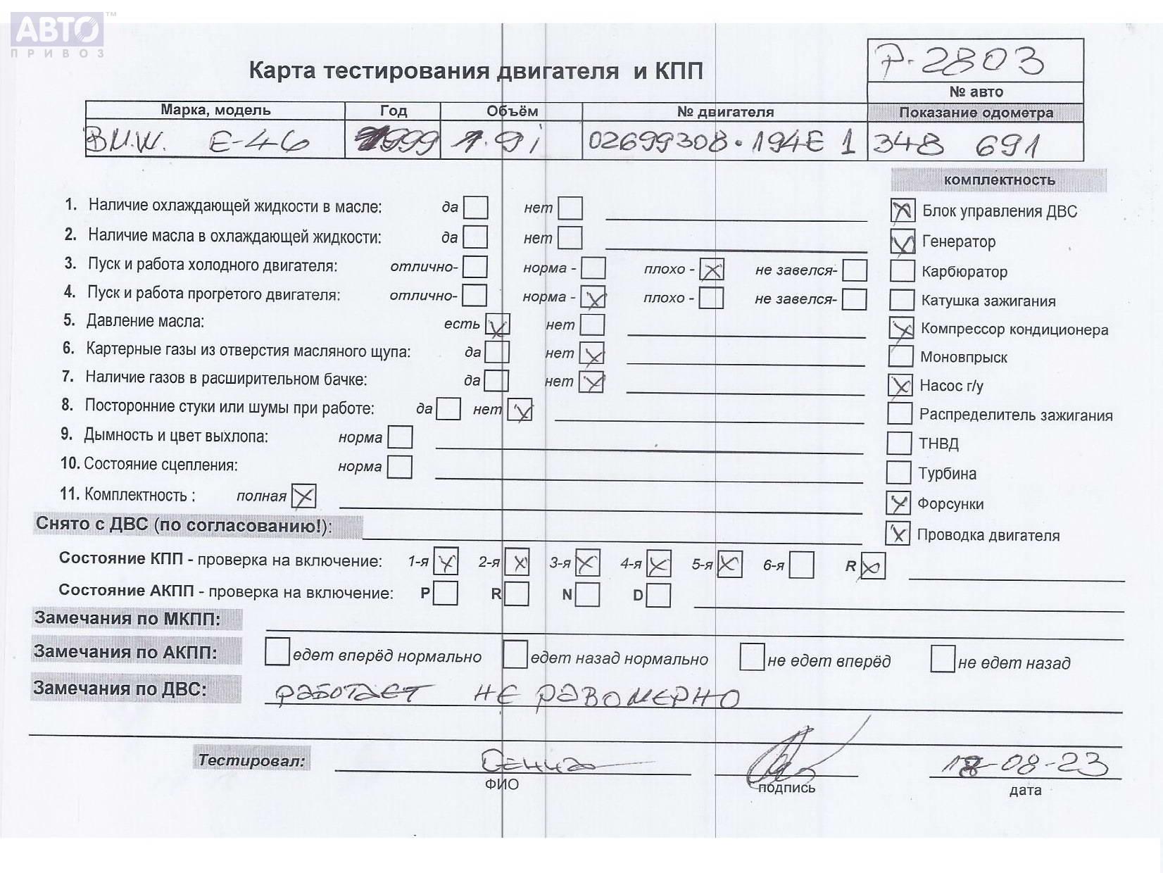 | Автомобиль / VIN: | P2803 WBAAP31050JL02908 |