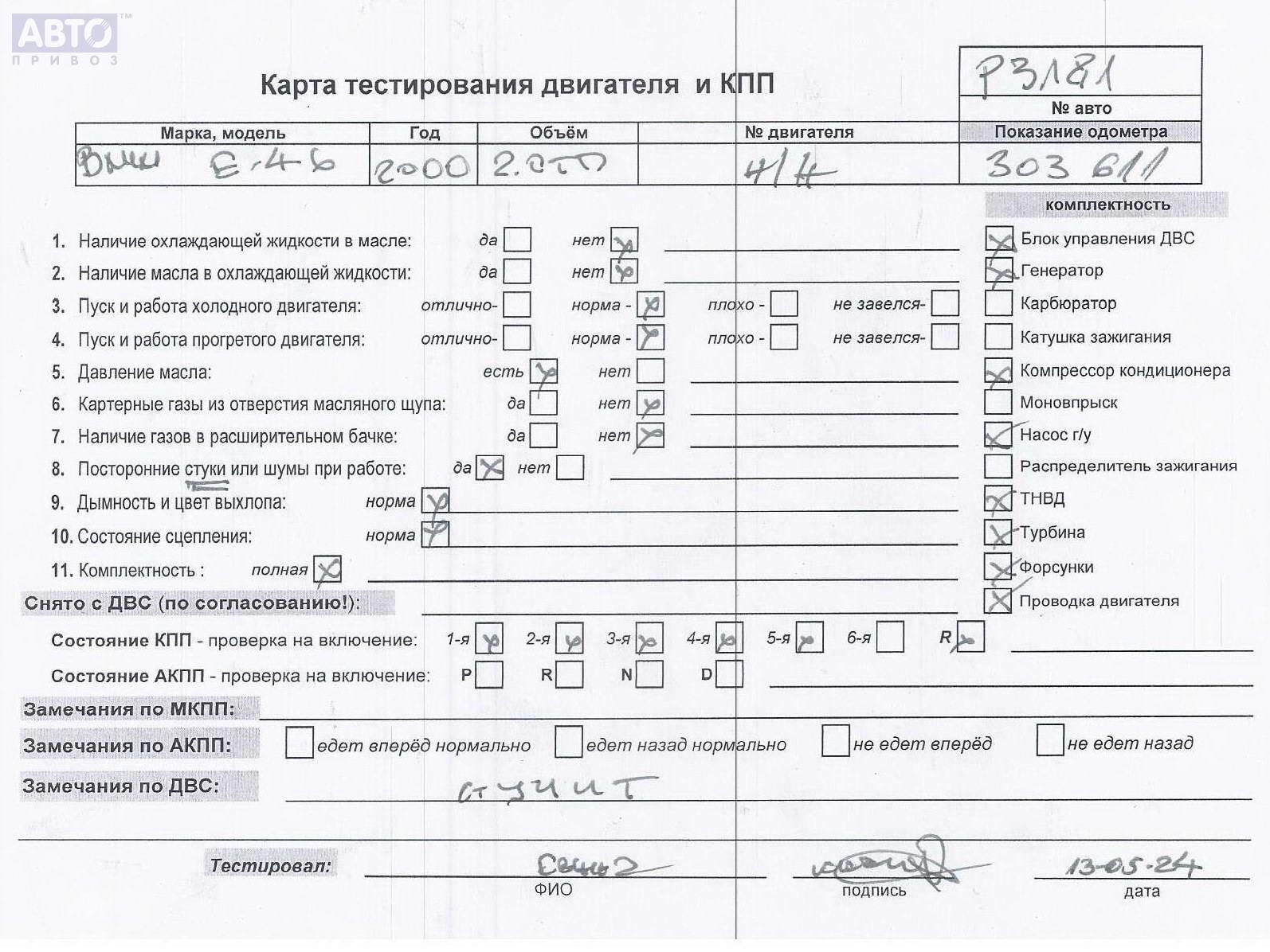 | Марка / Модель / Год: | BMW 3 E46 (1998-2006) 2000 |