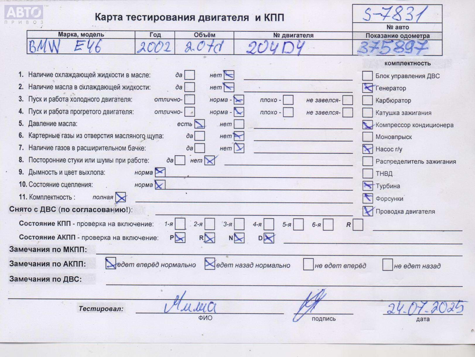 | Автомобиль / VIN: | S7831 WBAAP71020EM05445 |