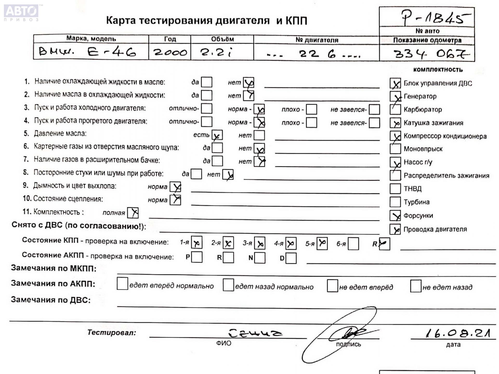 | Автомобиль / VIN: | P1845 WBAAV11080CF26658 |