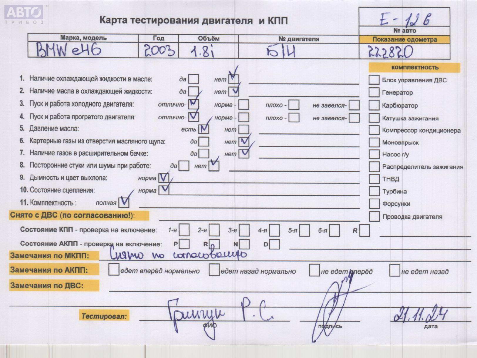 | Марка / Модель / Год: | BMW 3 E46 (1998-2006) 2004 |
