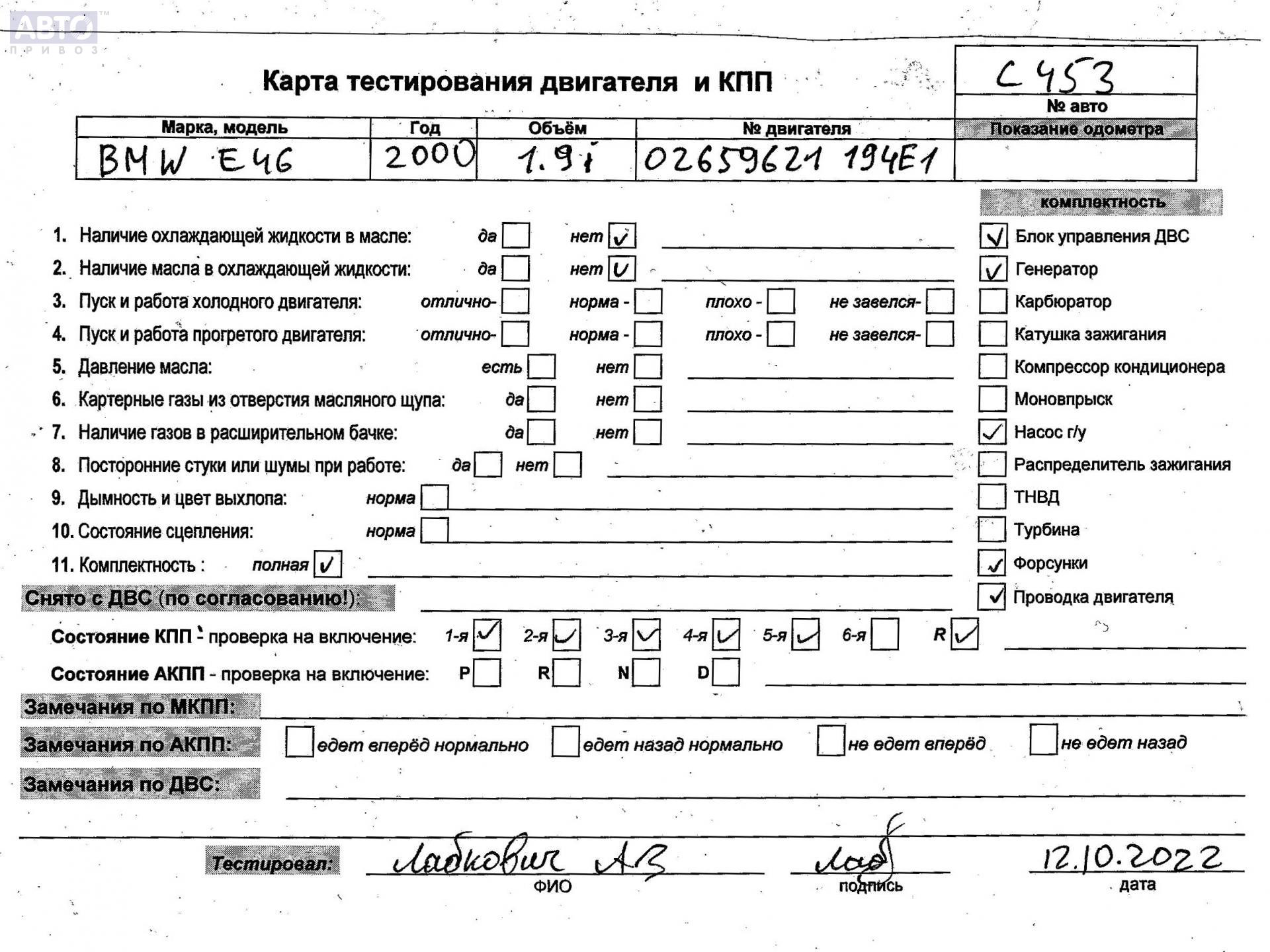 | Марка / Модель / Год: | BMW 3 E46 (1998-2006) 2000 |