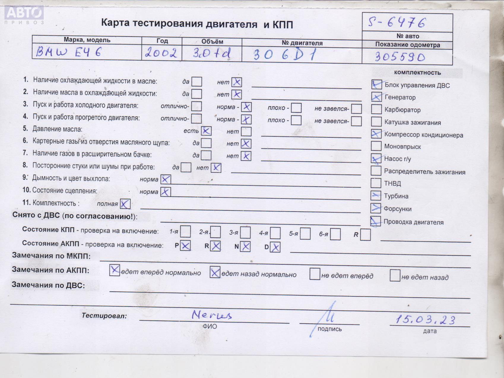 | Марка / Модель / Год: | BMW 3 E46 (1998-2006) 2002 |