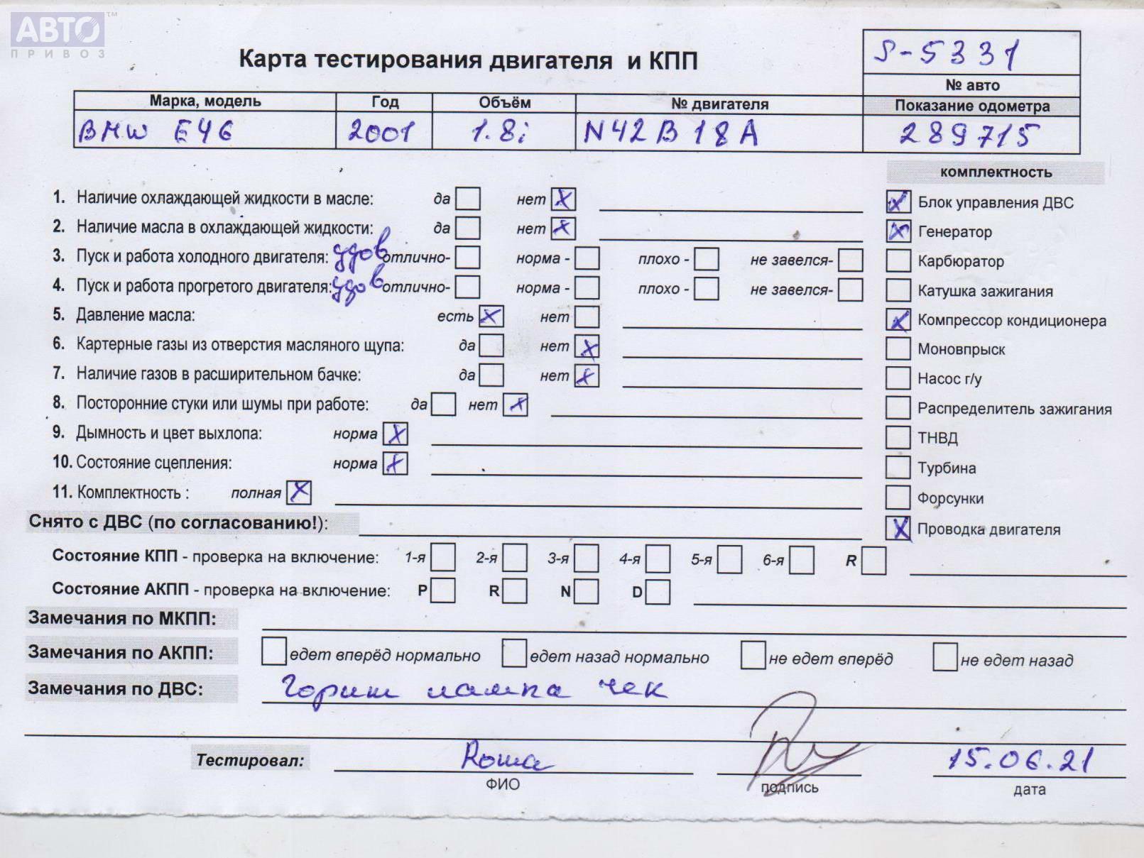 | Автомобиль / VIN: | S5331 WBAAT51020FW18695 |