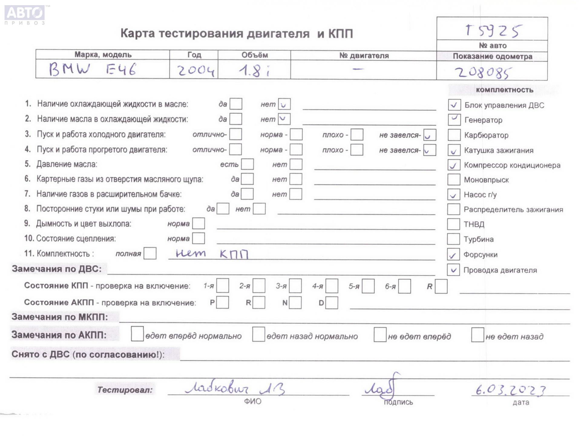 | Марка / Модель / Год: | BMW 3 E46 (1998-2006) 2004 |
