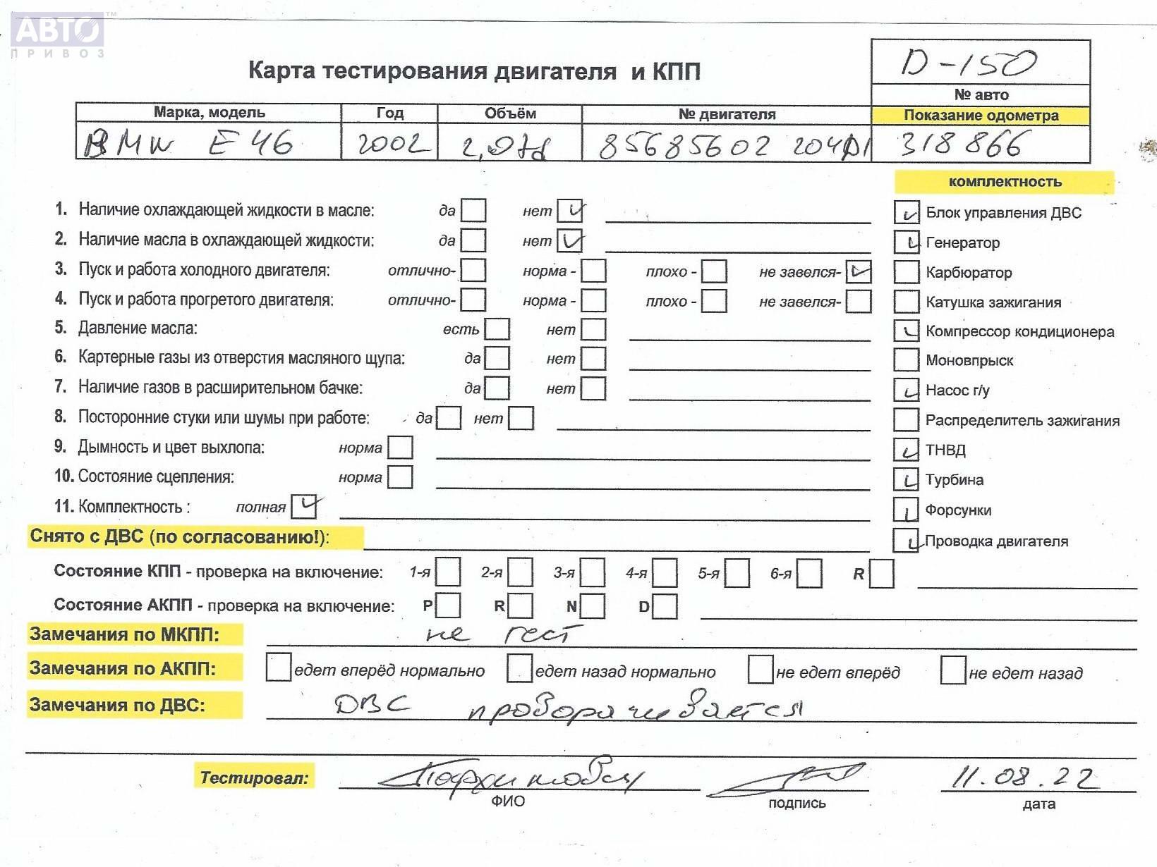 | Марка / Модель / Год: | BMW 3 E46 (1998-2006) 2002 |