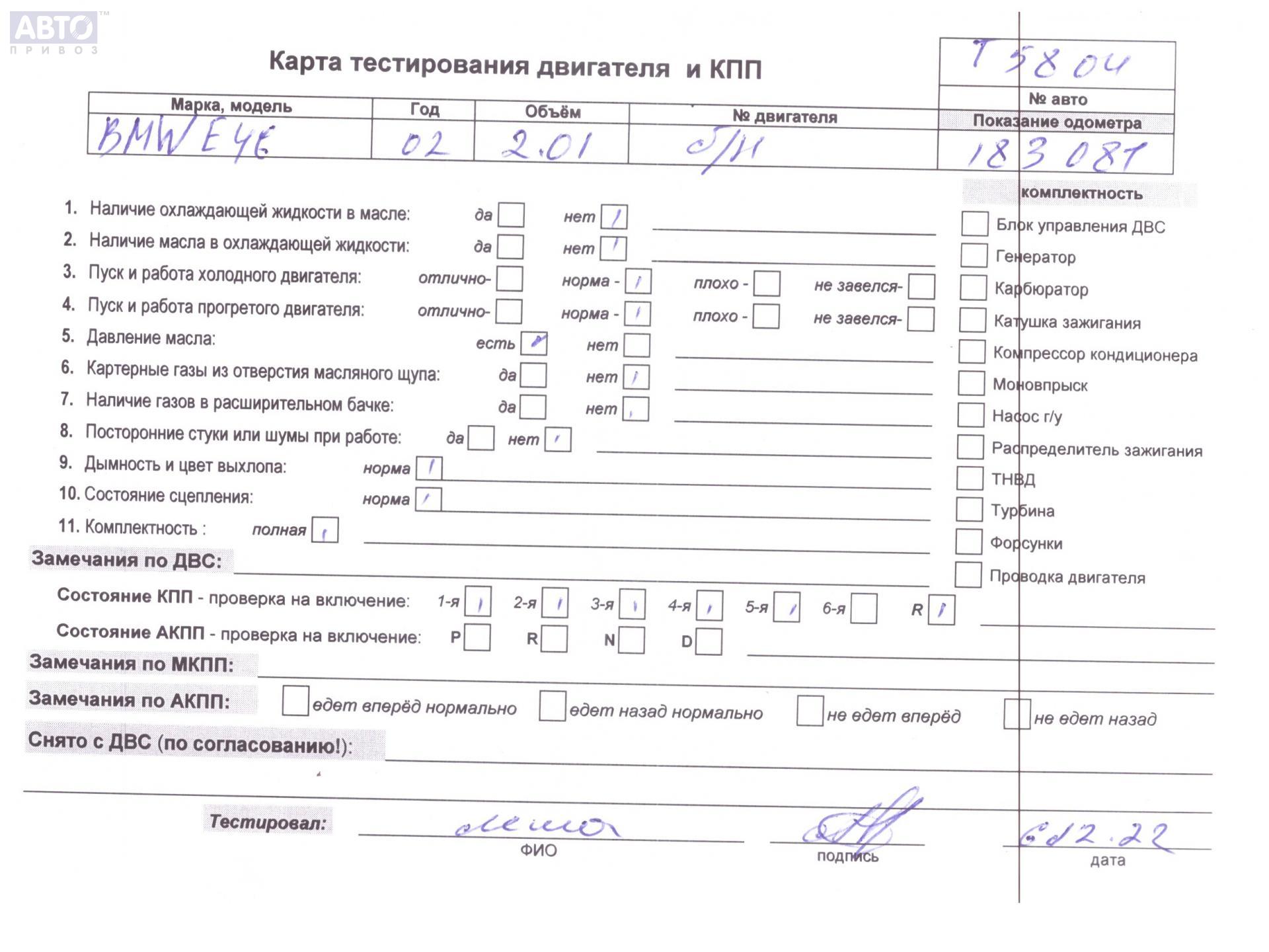 | Марка / Модель / Год: | BMW 3 E46 (1998-2006) 2002 |