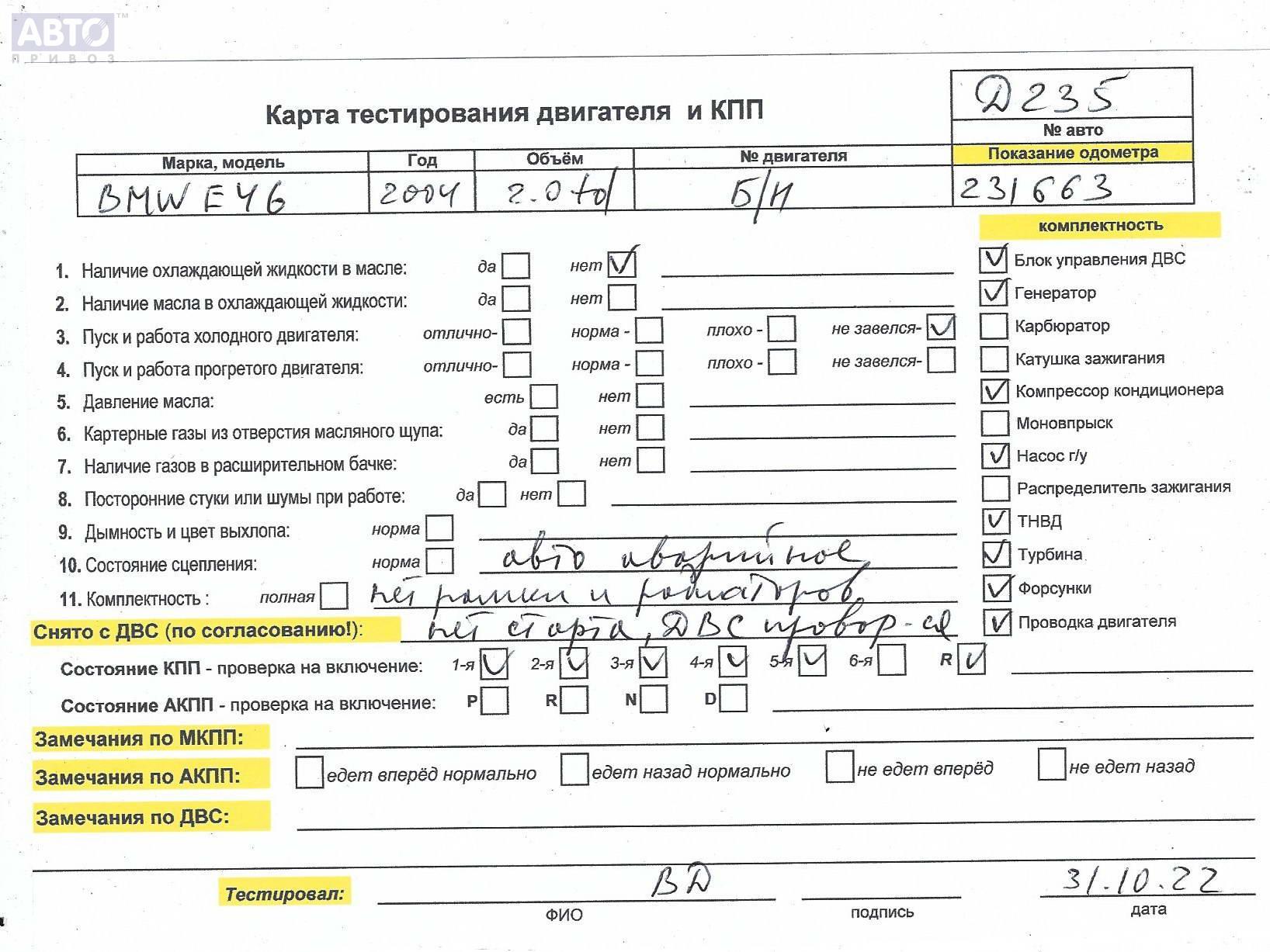 | Марка / Модель / Год: | BMW 3 E46 (1998-2006) 2004 |
