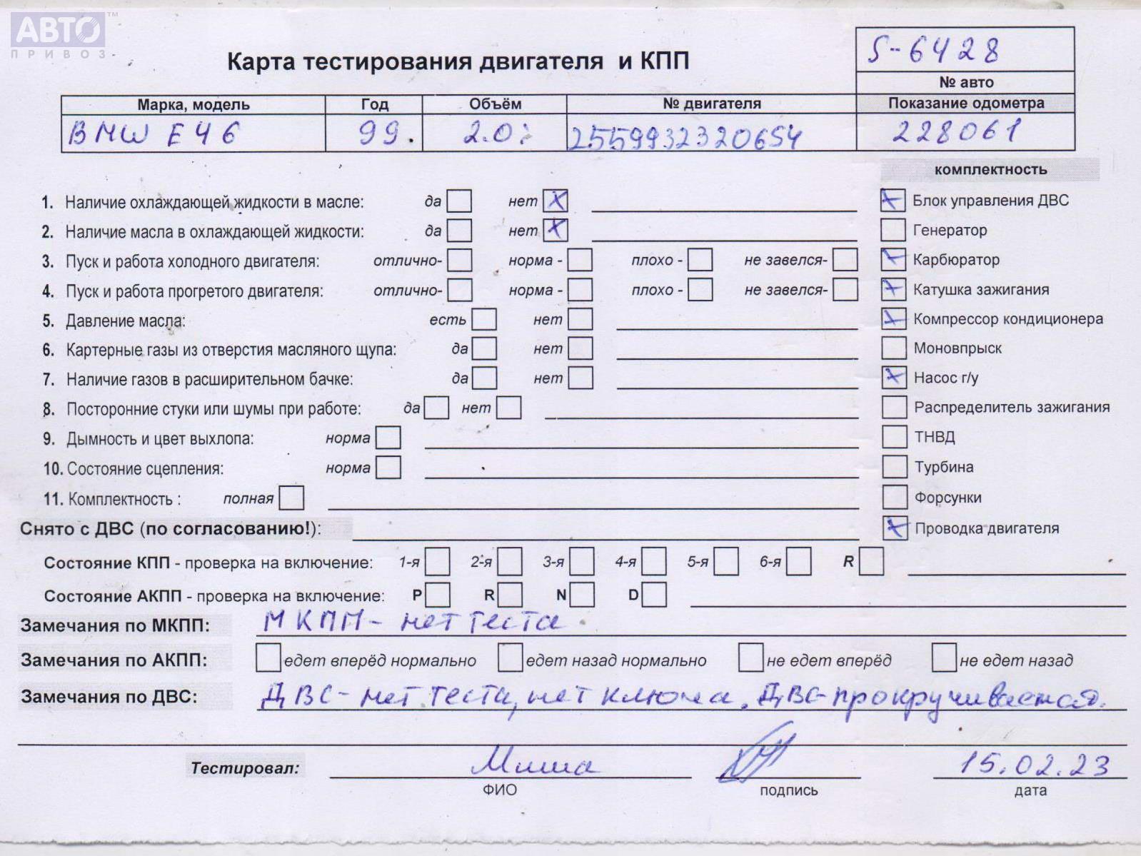 | Автомобиль / VIN: | S6428 WBAAM11070JM46974 |