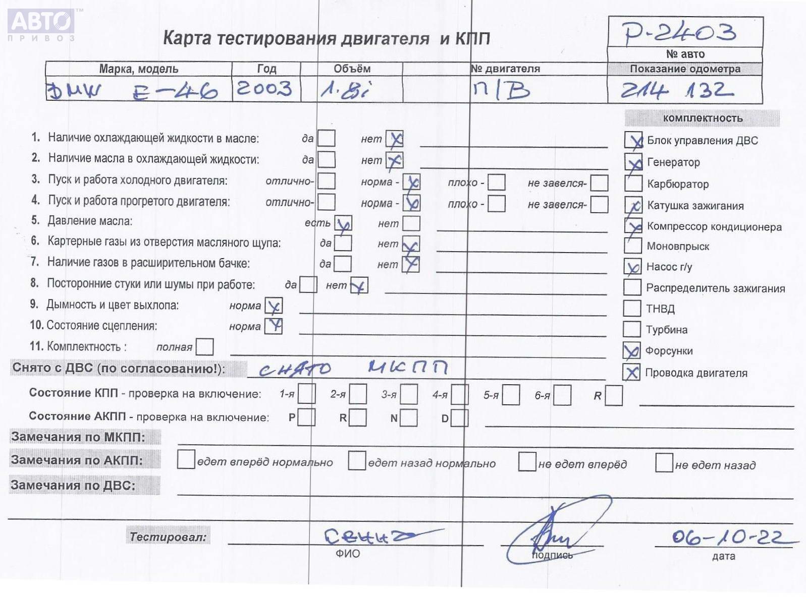 | Марка / Модель / Год: | BMW 3 E46 (1998-2006) 2003 |